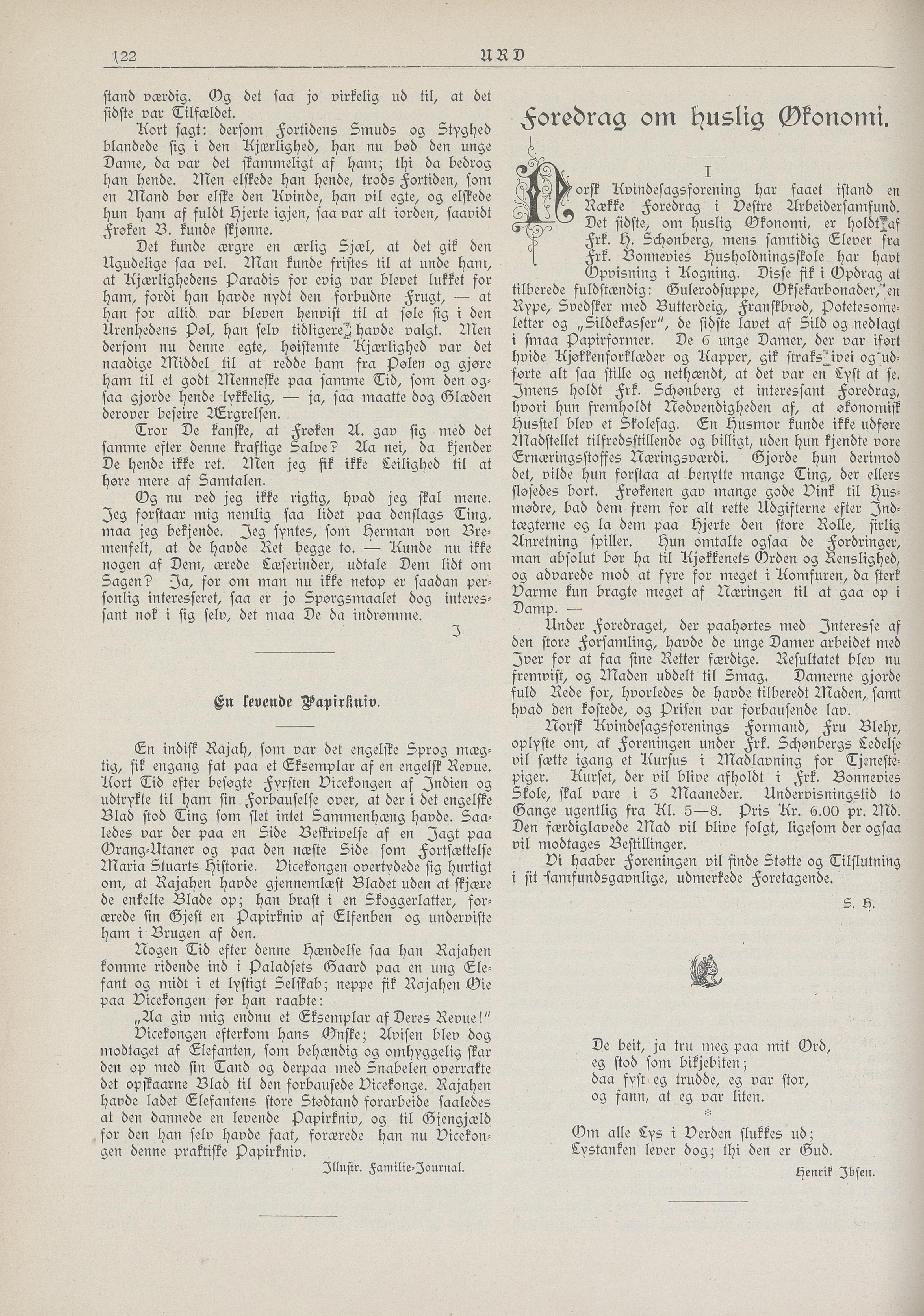 Full resolution (JPEG) - On this page / på denna sida - No. 13. Lørdag 27. Marts 1897 - J.: Kjærlighed - En levende Papirkniv - S. H.: Foredrag om huslig Økonomi