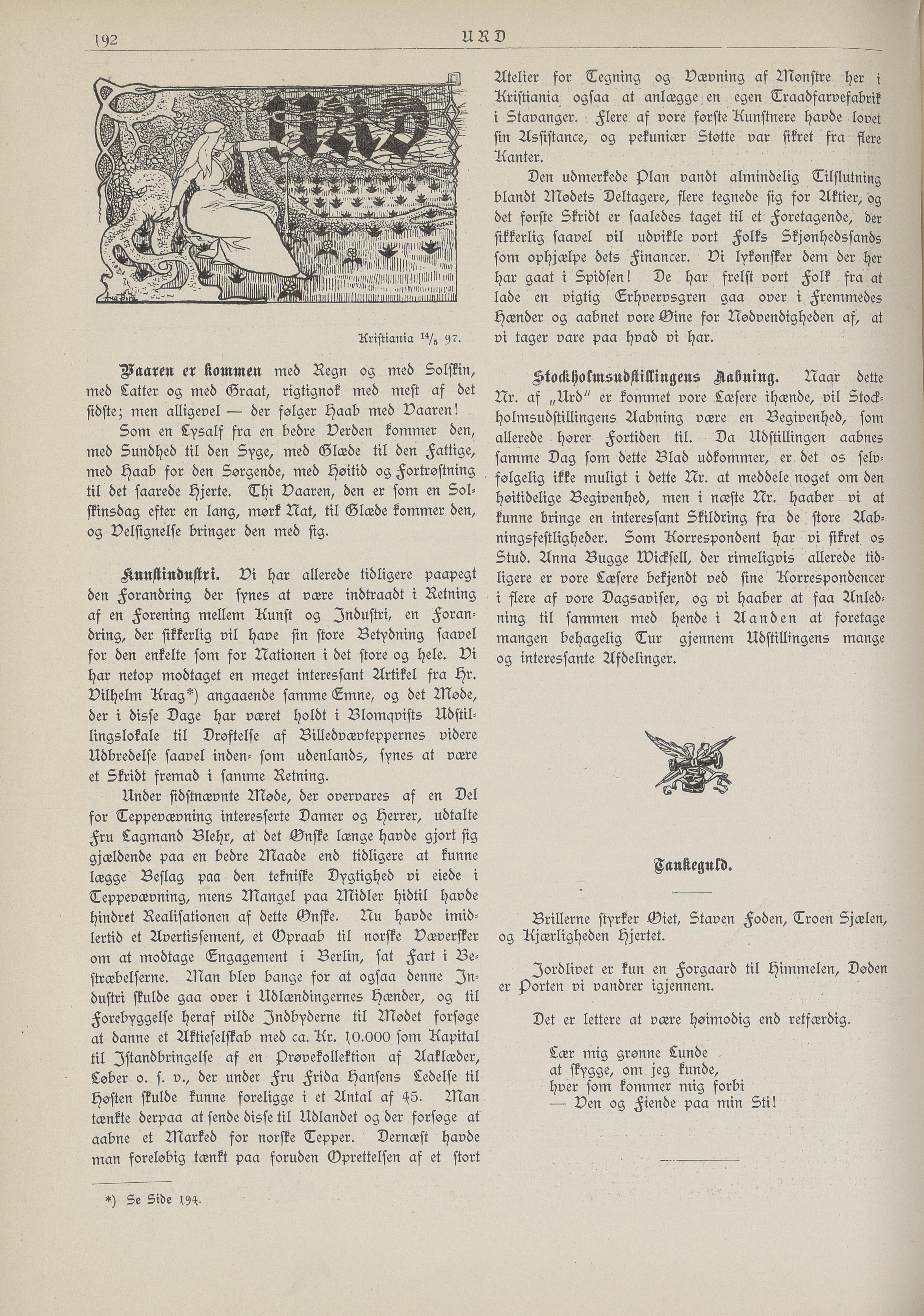 Nr. af ~Urd« er kommet vore Læsere ihænde, vil Stock