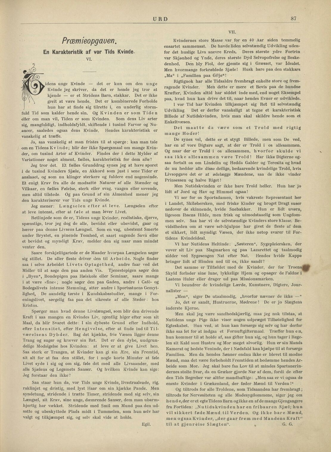 fra Fortiden: ,,Nutidskvinden har en fribaaren Sjæl; hun