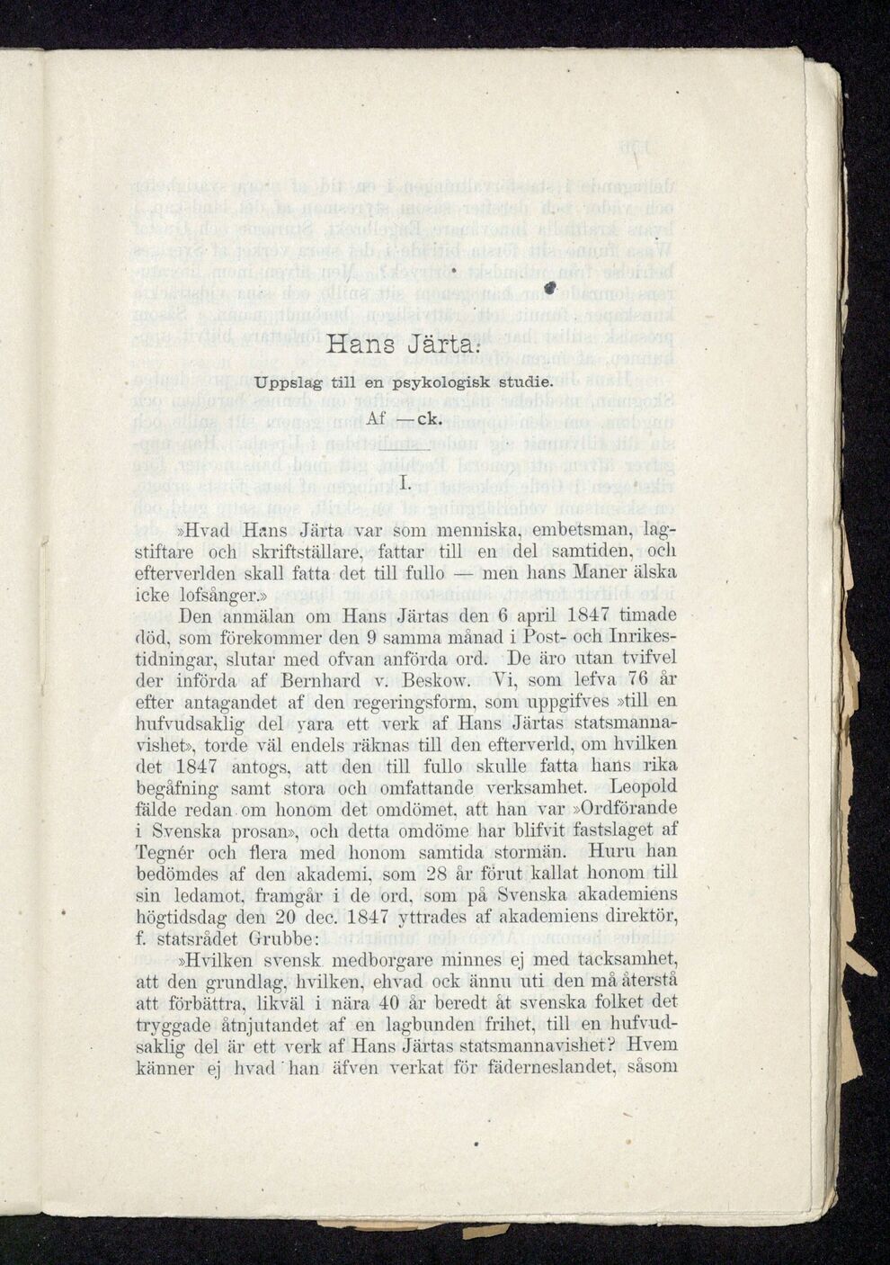 hufvudsaklig del vara ett verk af Hans Järtas statsmanna-