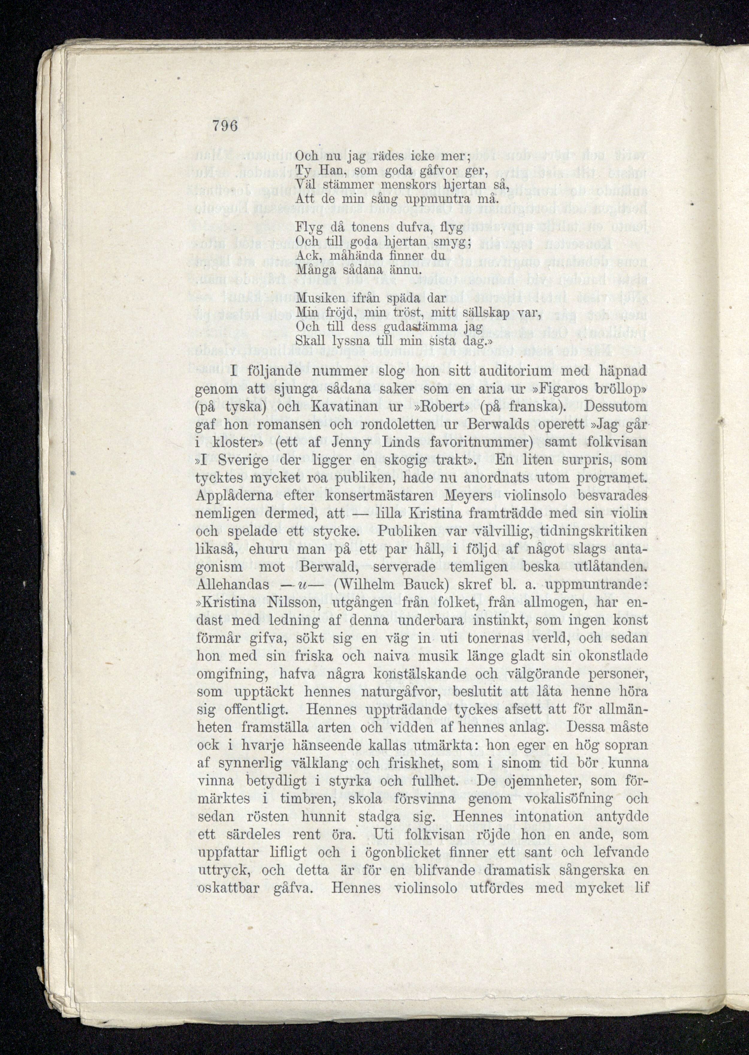 1 kloster» (ett af Jenny Linds favoritnummer) samt folkvisan