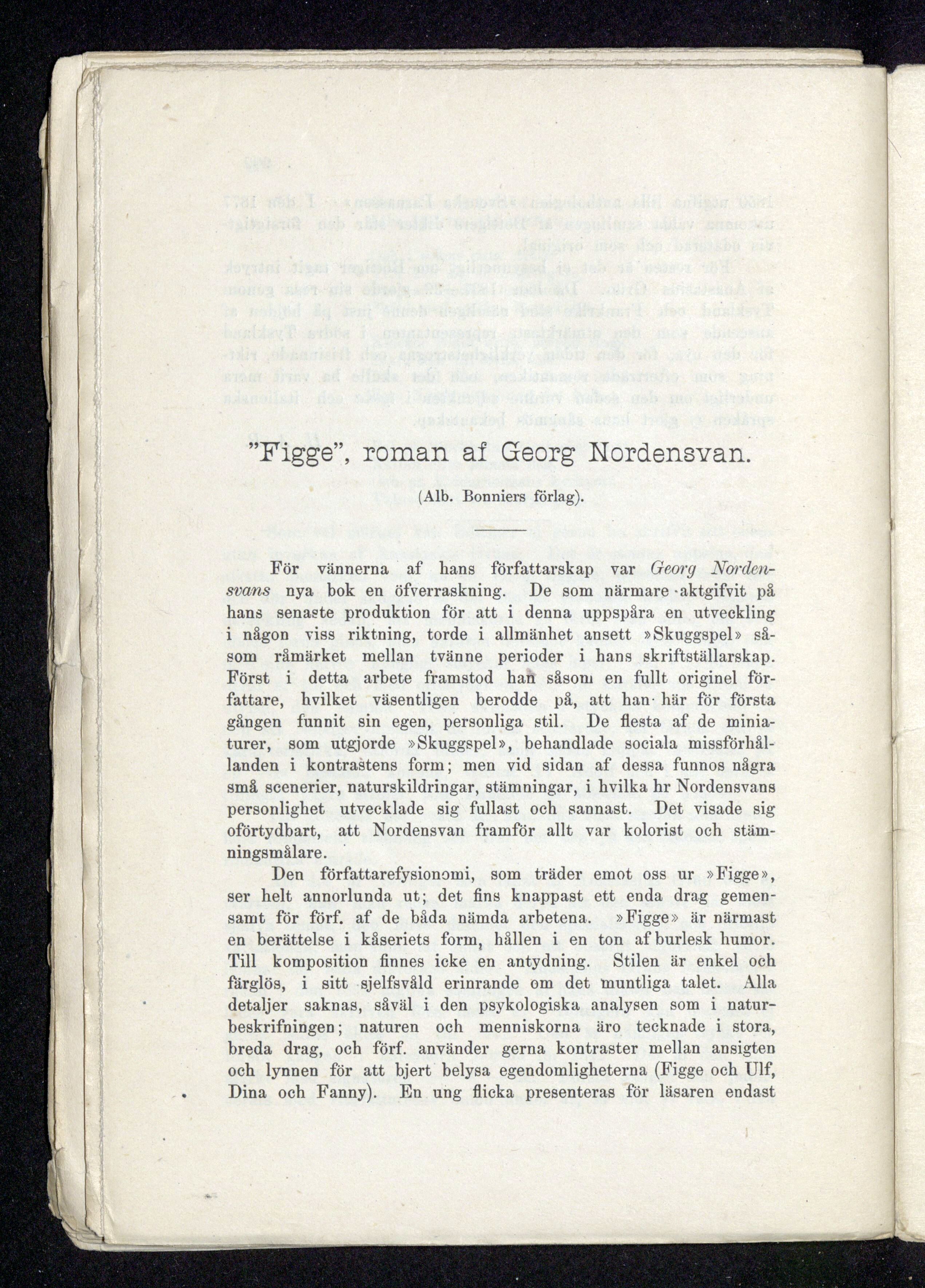 Full resolution (JPEG) - On this page / på denna sida - Häfte 11—12 - »Figge» (roman af Georg Nordensvan), anmälan af O. H.