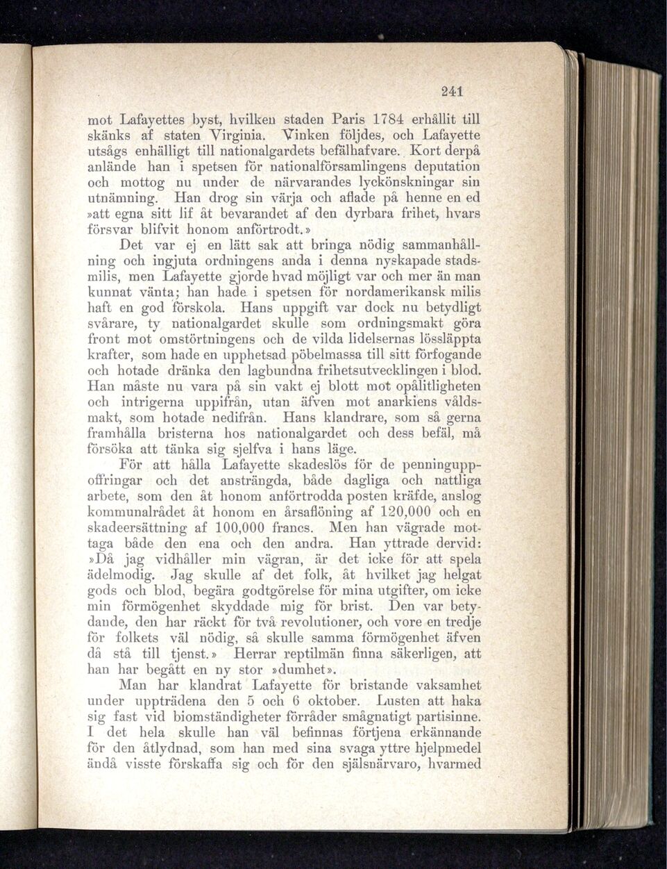 mot Lafayettes byst, hvilken staden Paris 1784 erhållit till