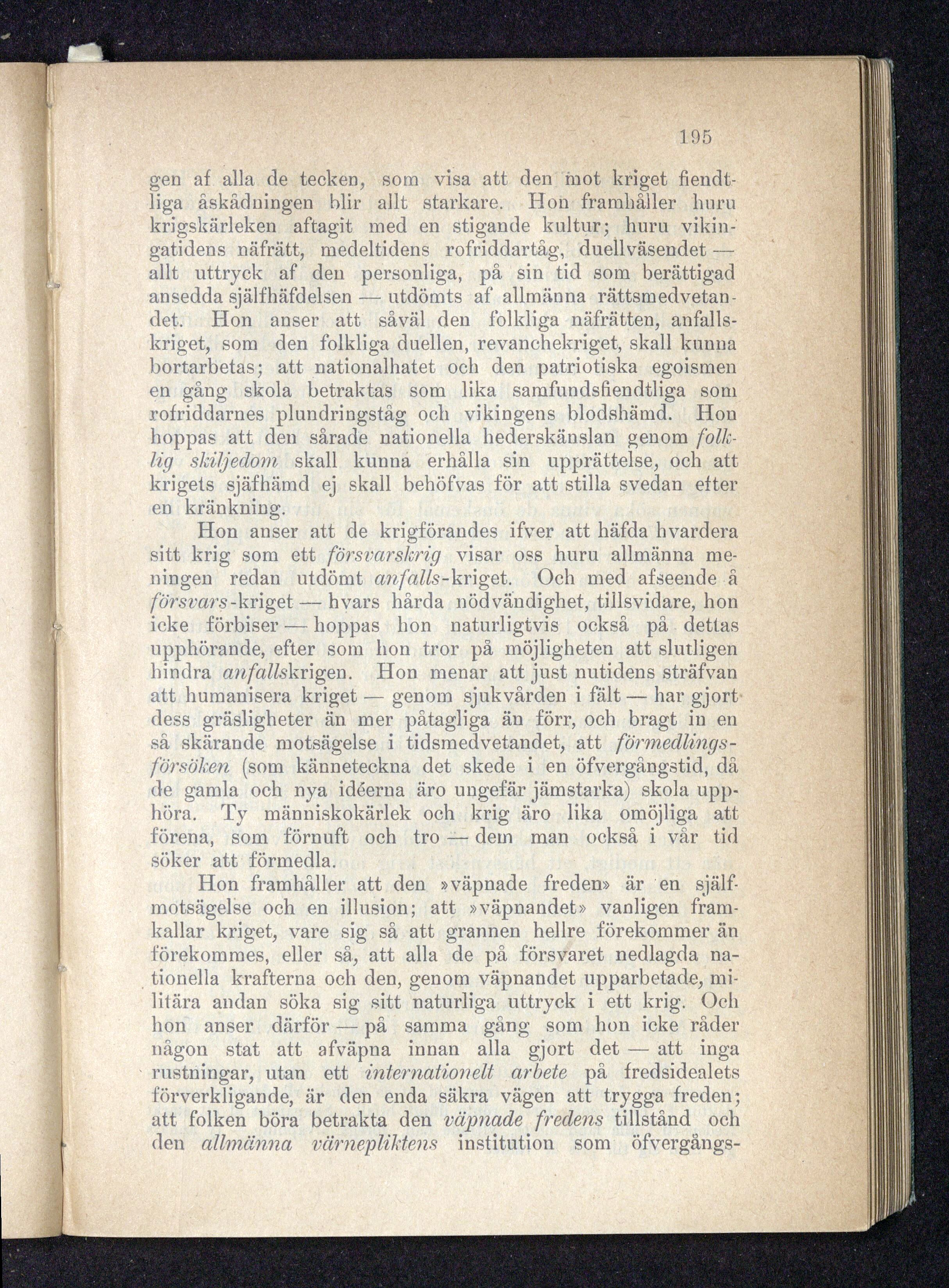 hindra anfallskrigen. Hon menar att just nutidens sträfvan