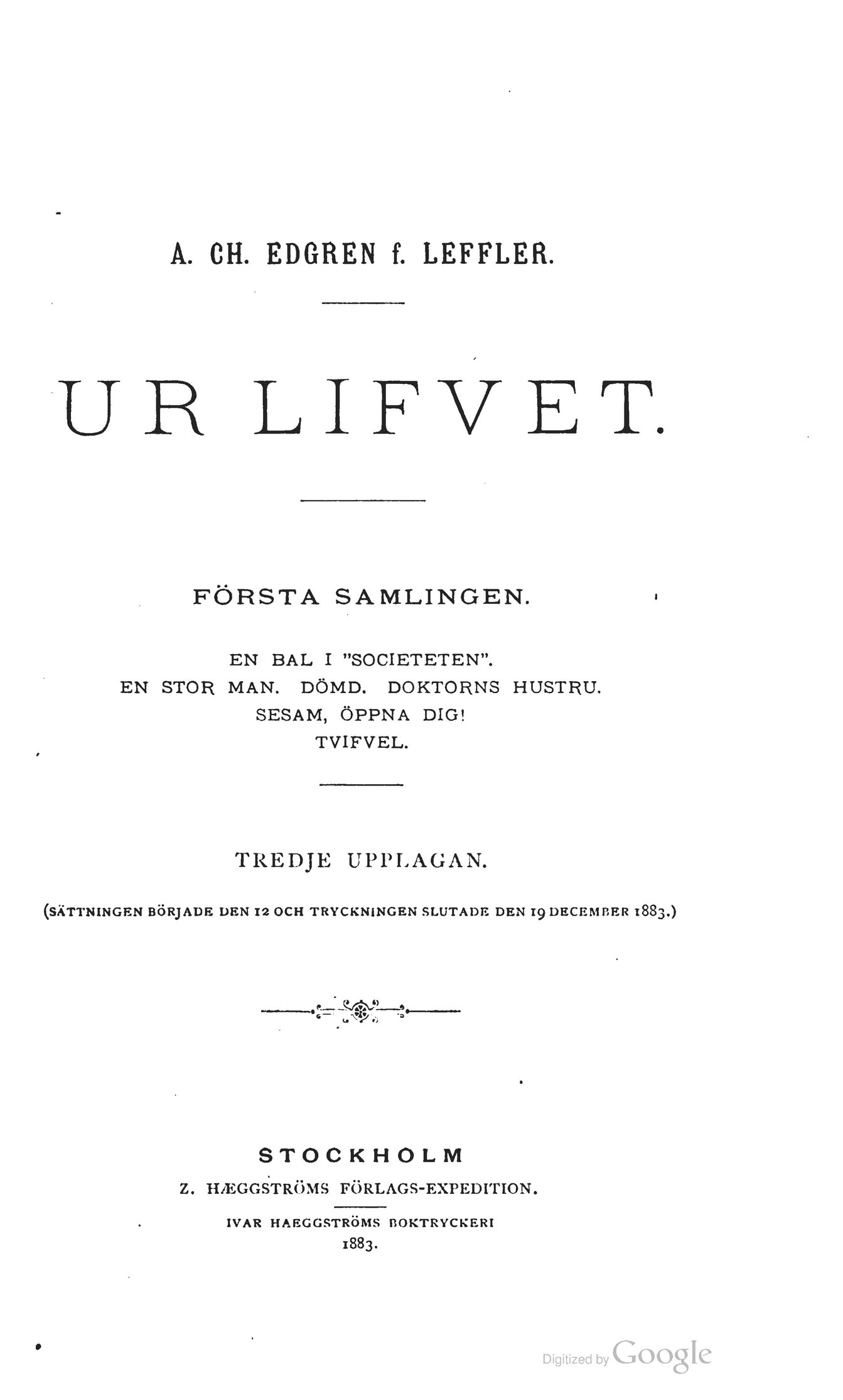 (SÄTTNINGEN BÖRJADE DEN 12 OCH TRYCKNINGEN SLUTADE DEN 19 DECEMBER 1883.)