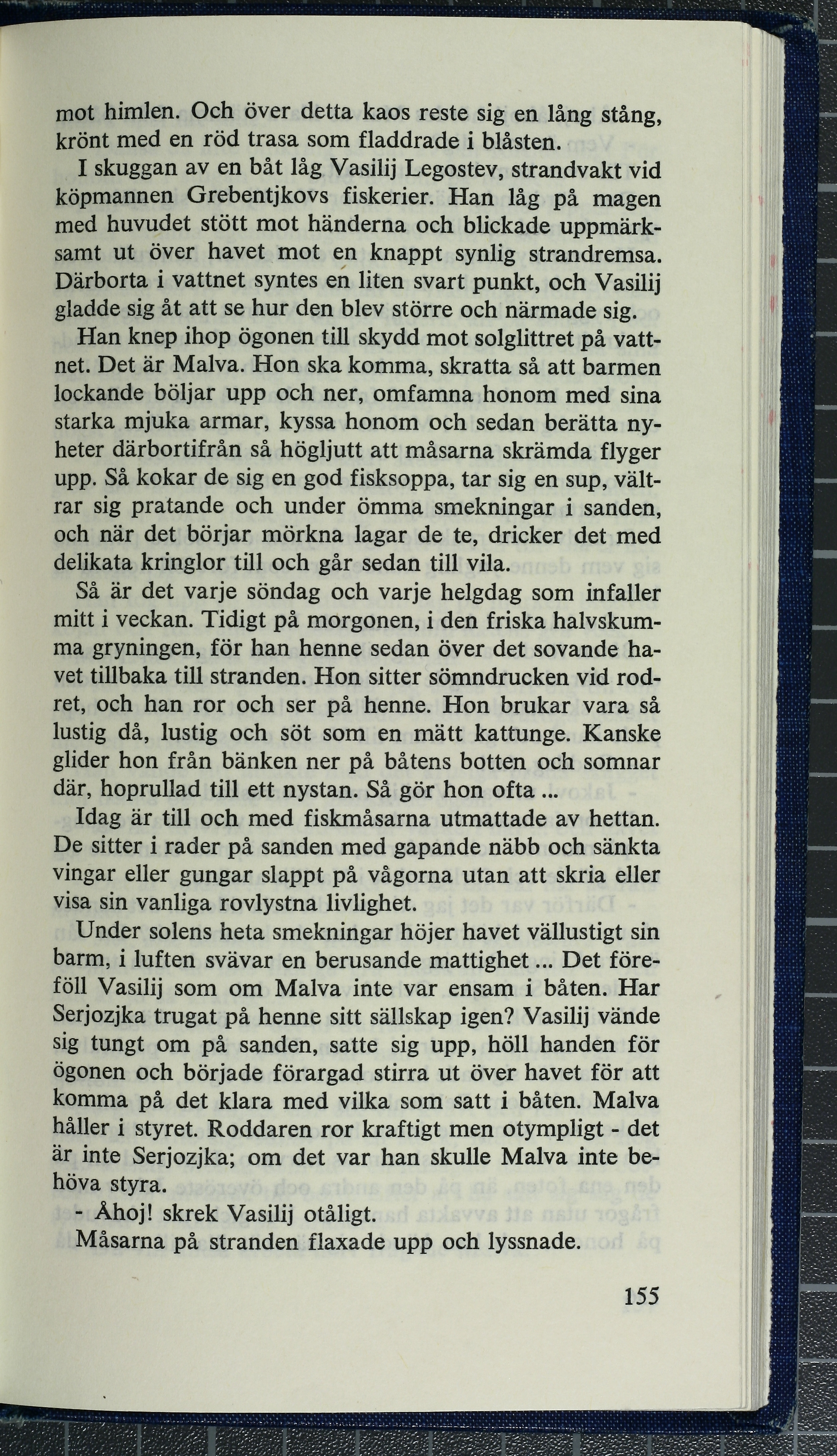 Därborta i vattnet syntes en liten svart punkt, och Vasilij