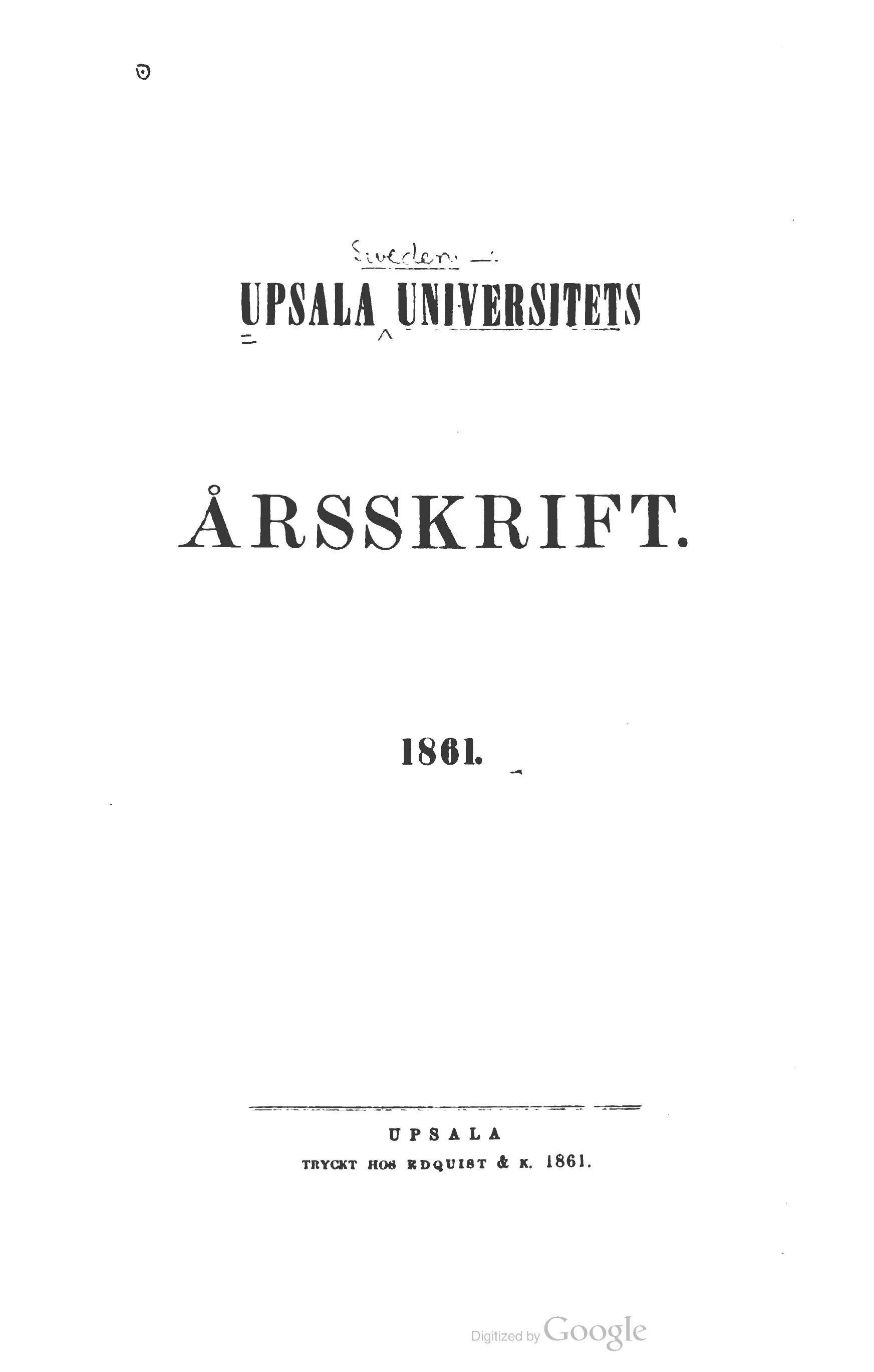 - Project Runeberg -  Upsala Universitets Årsskrift / 1861 /