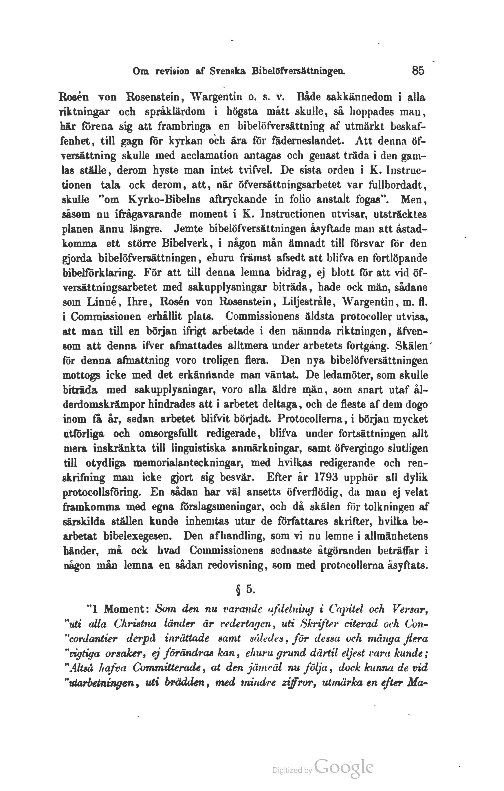 gjorda bibelöfversättningen, ehuru främst afsedt att blifva en fortlöpande