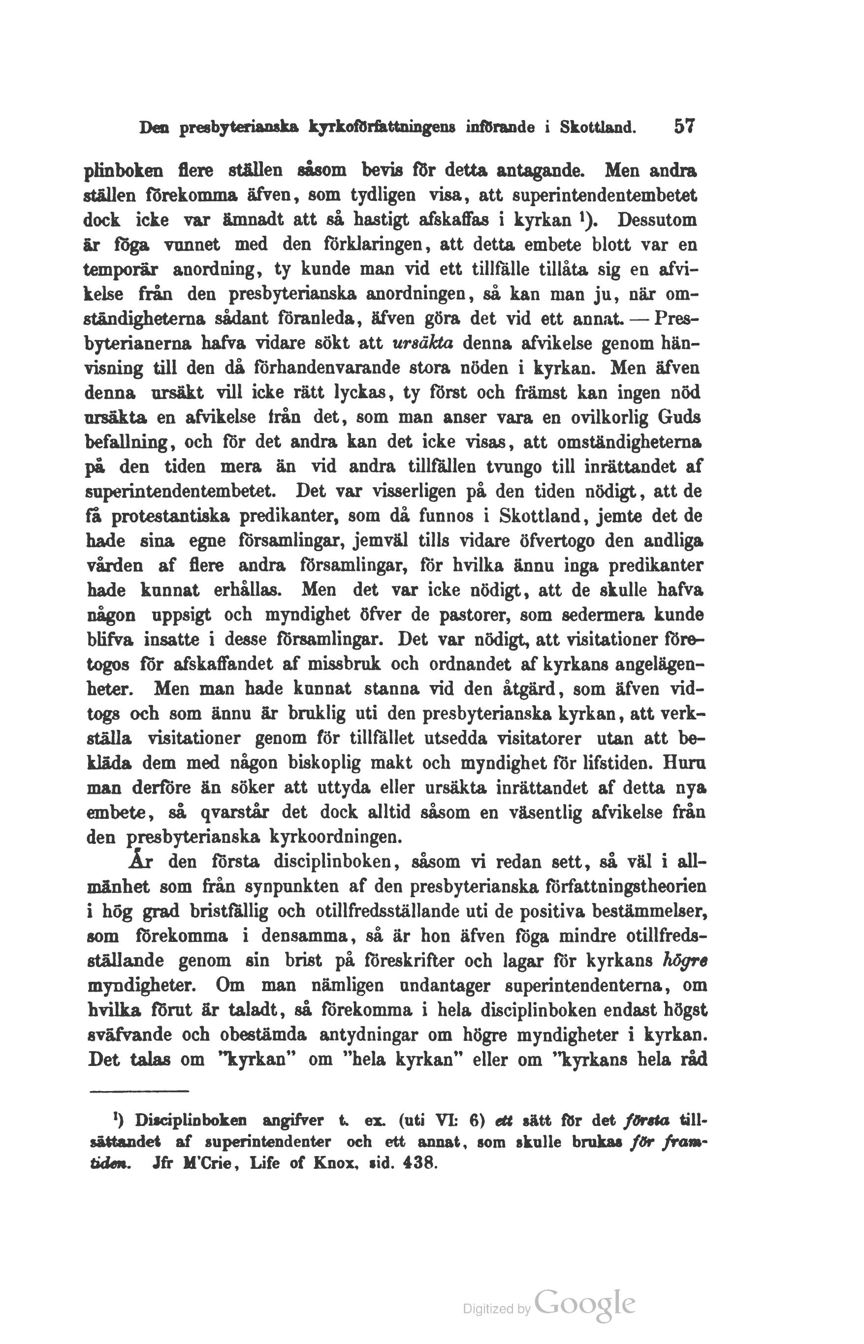 Den presbyterianska kyrkoförfattningens införande i Skottland. — 57