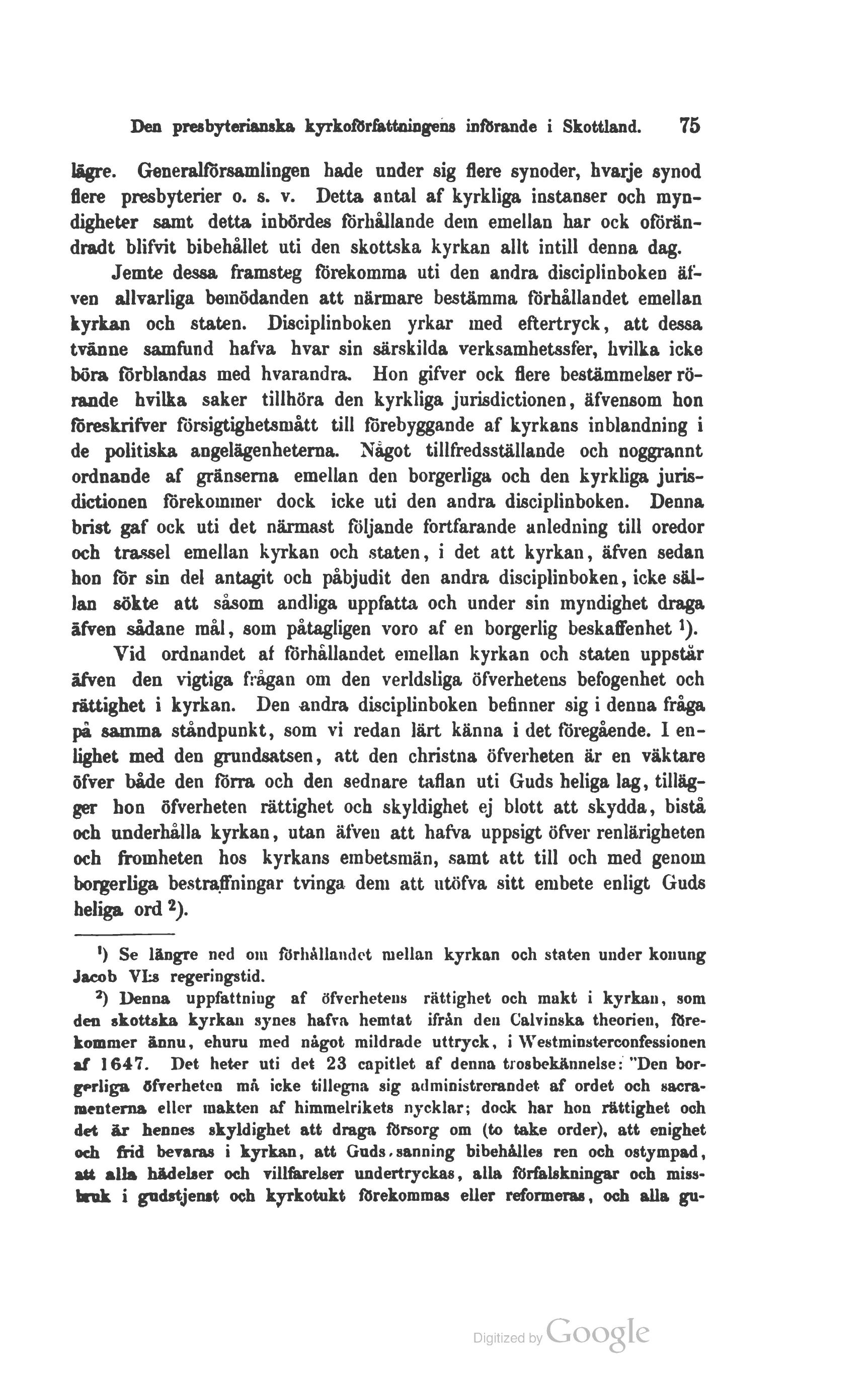 Den presbyterianska kyrkoförfattningens införande i Skottland. 75