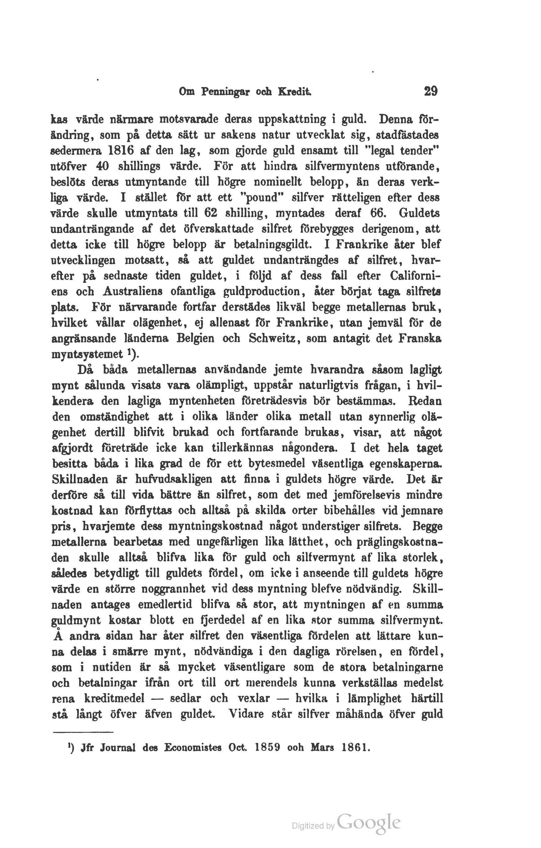 !) Jfr Journal des Economistes Oct. 1859 ooh Mars 1861.