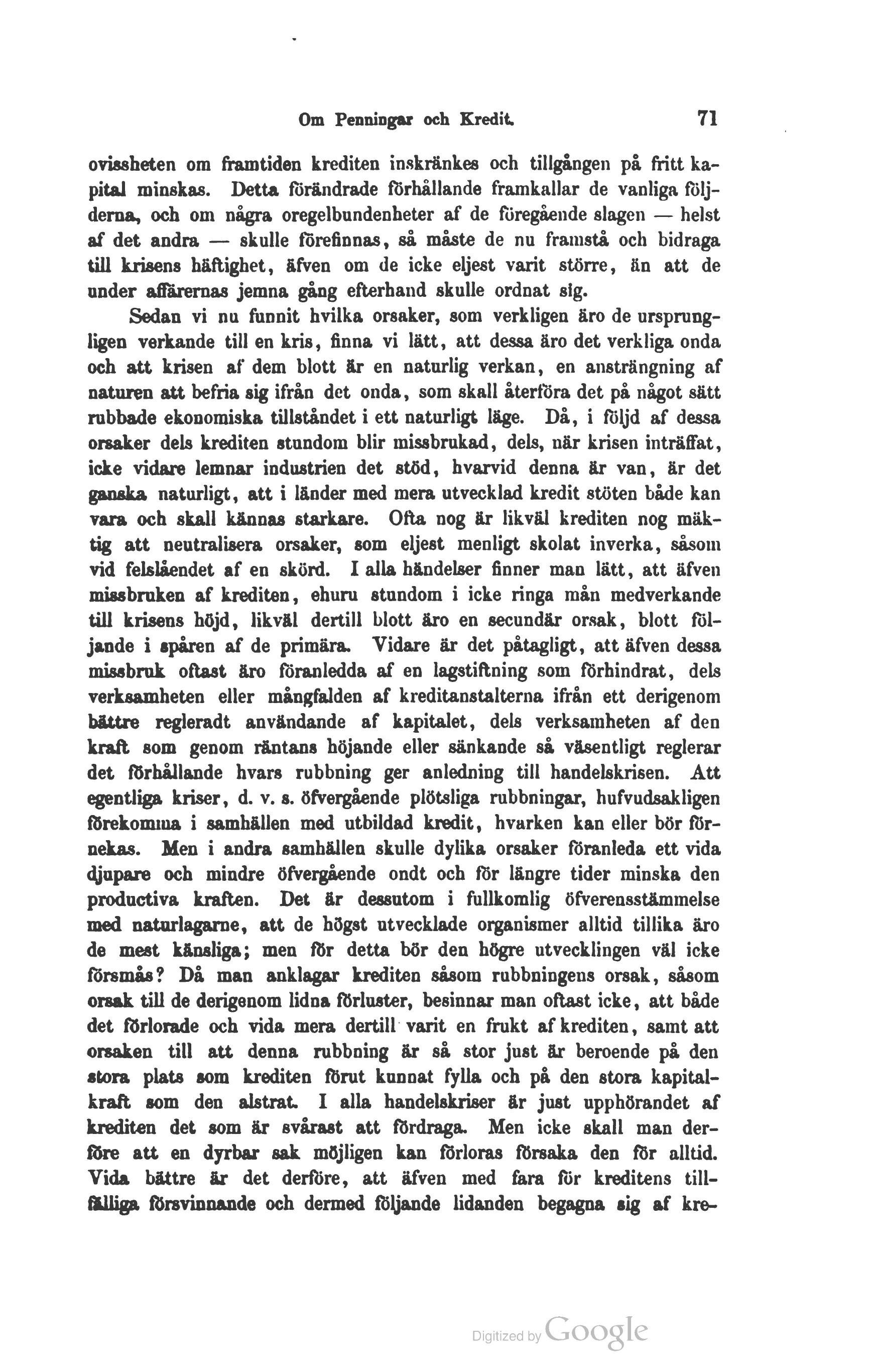 och att krisen af dem blott är en naturlig verkan, en ansträngning af