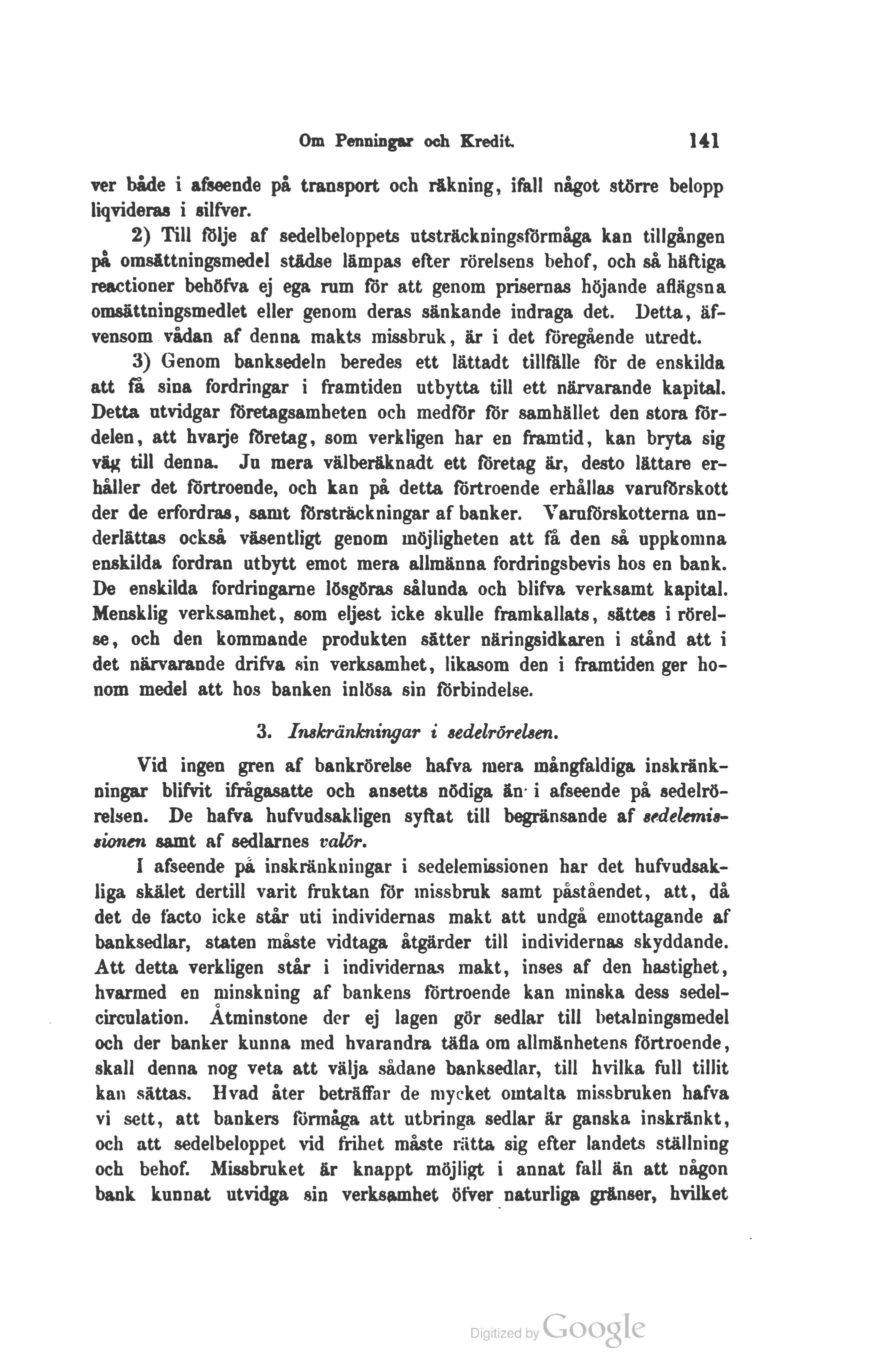 I afseende på inskränkningar i sedelemissionen har det hufvudsak-