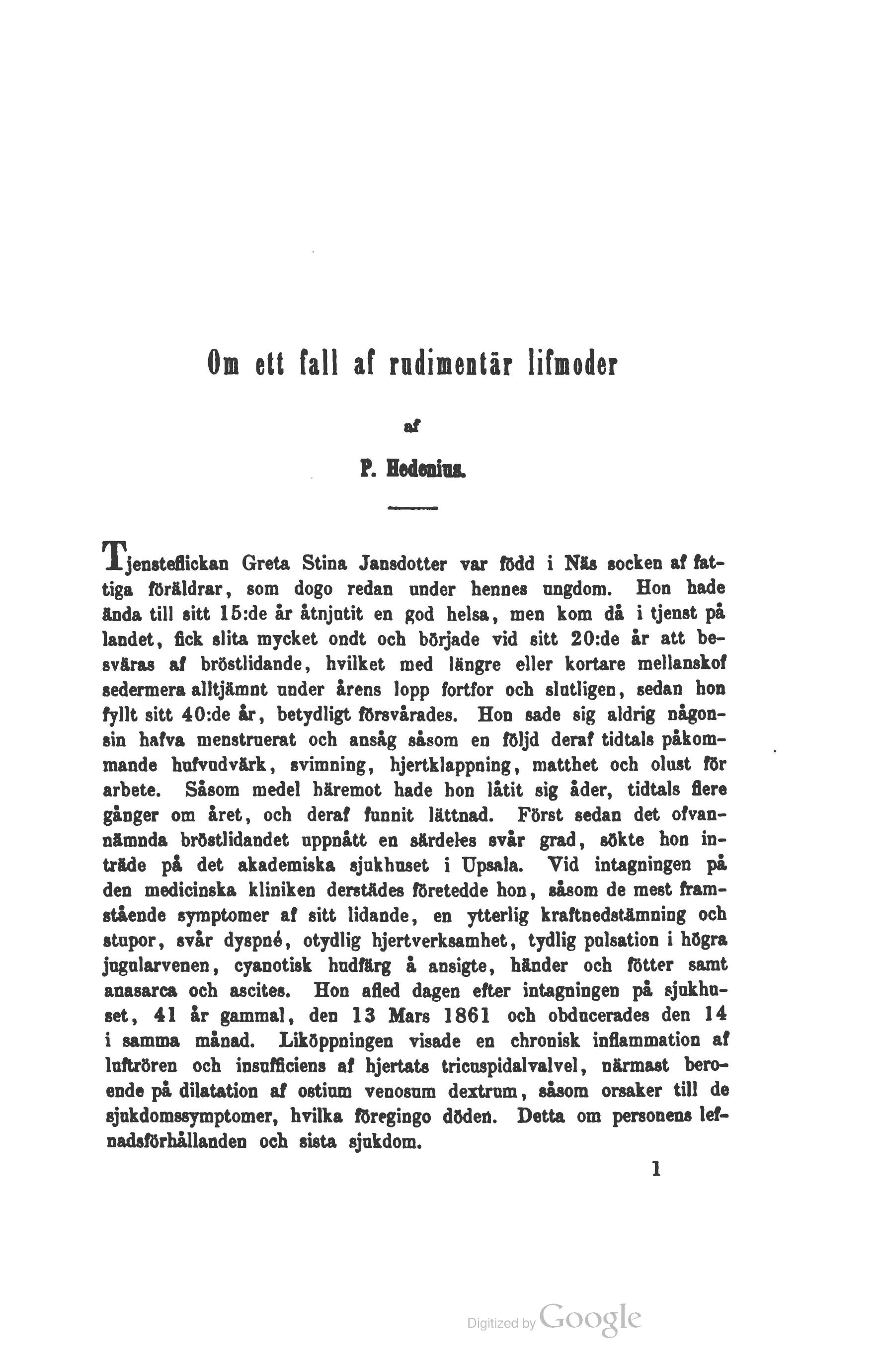 sin hafva menstruerat och ansåg såsom en följd deraf tidtals påkom-
