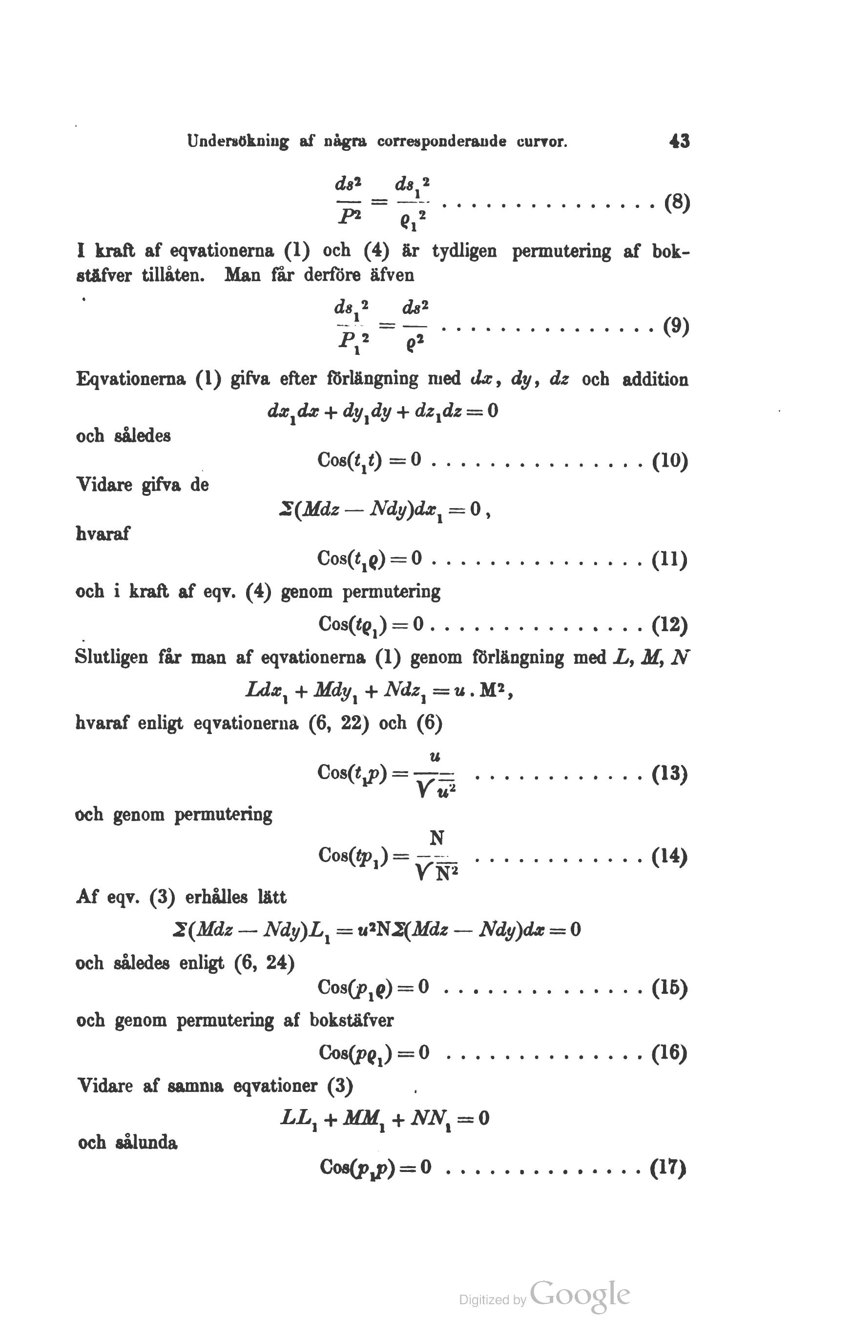 Undersökning af några corresponderande curvor. 43