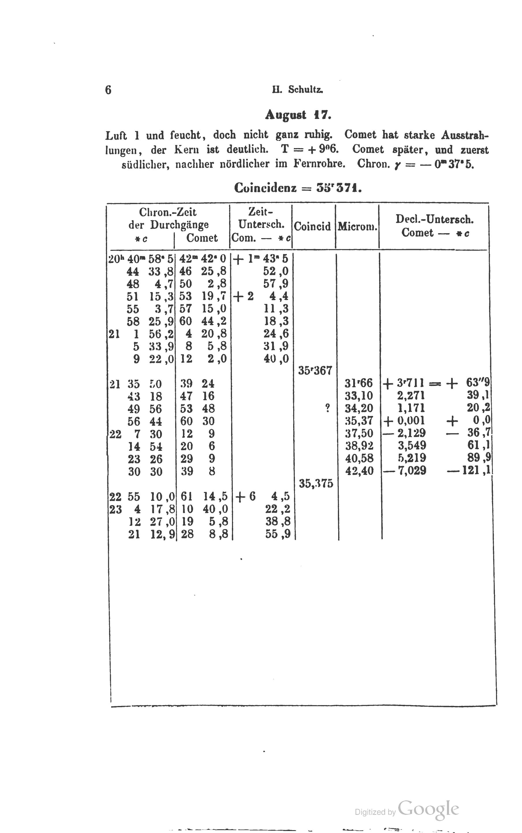 der Durchgänge Untersch. |Coincid | Microm. Decl.-Untersch.