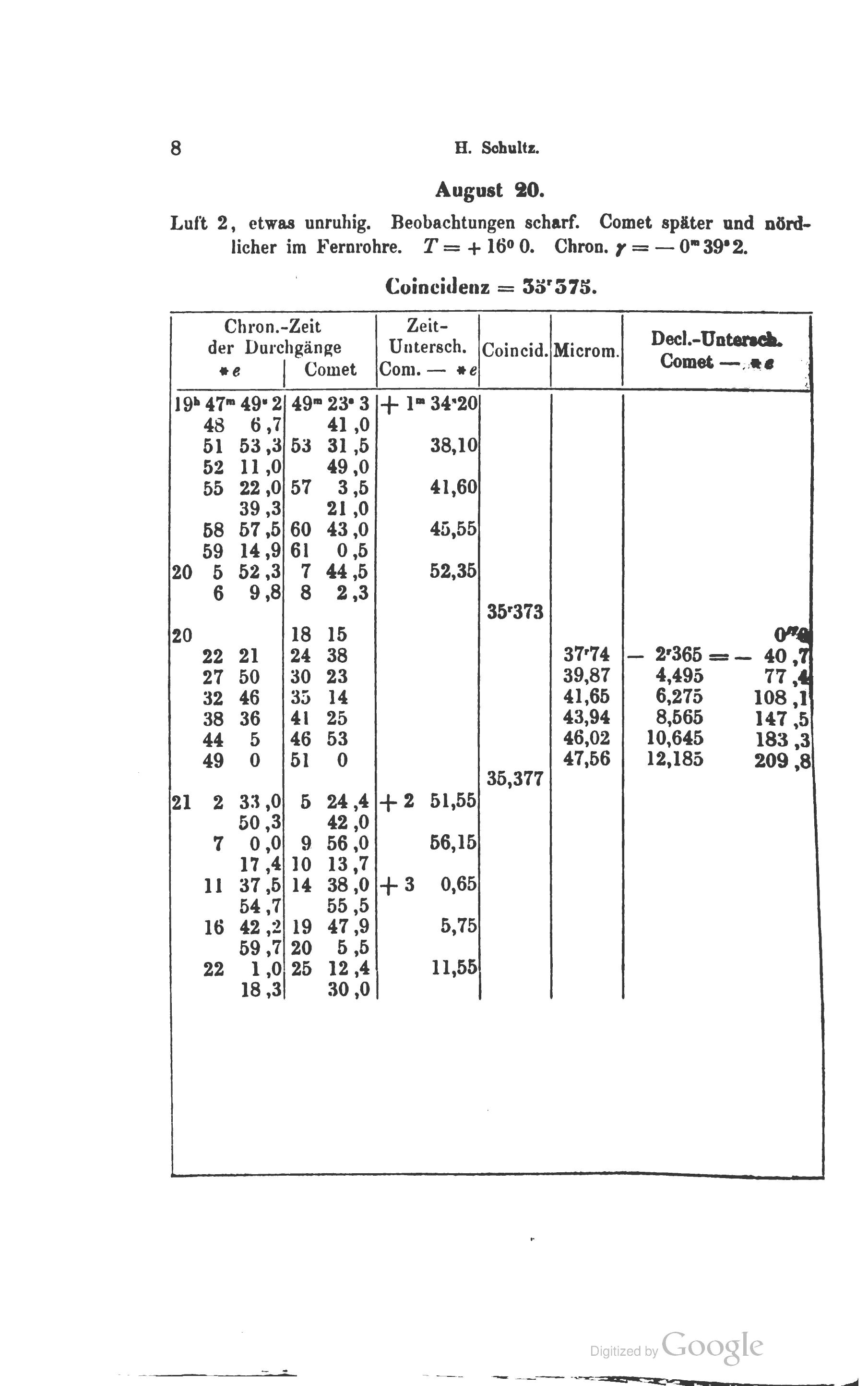 der Durchgänge Untersch. |Coincid.|/Microm. Decl.-Untersch.