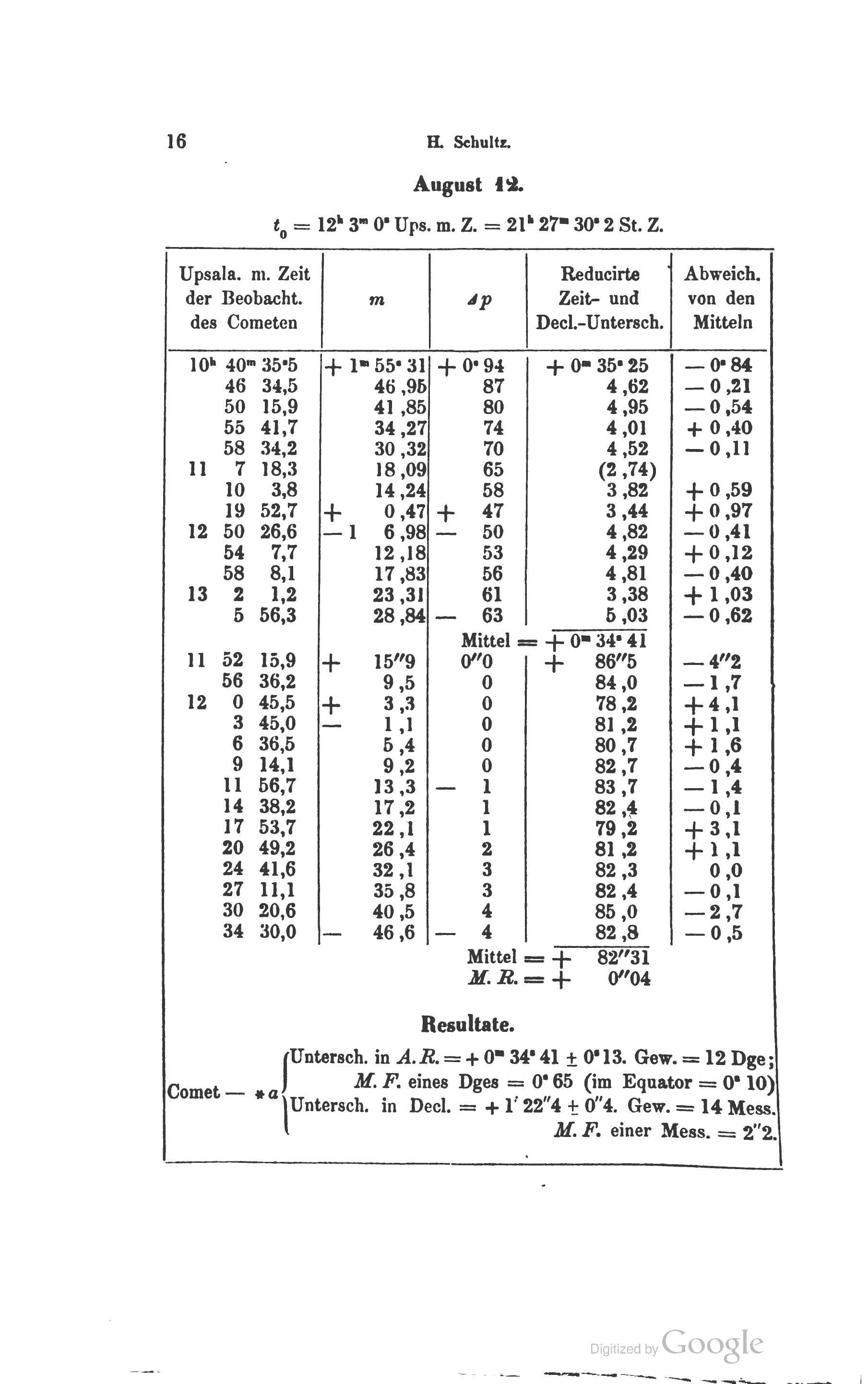 Untersch. in A.R. = + 0" 34" 41 + 0"13. Gew. = 12 Dge;