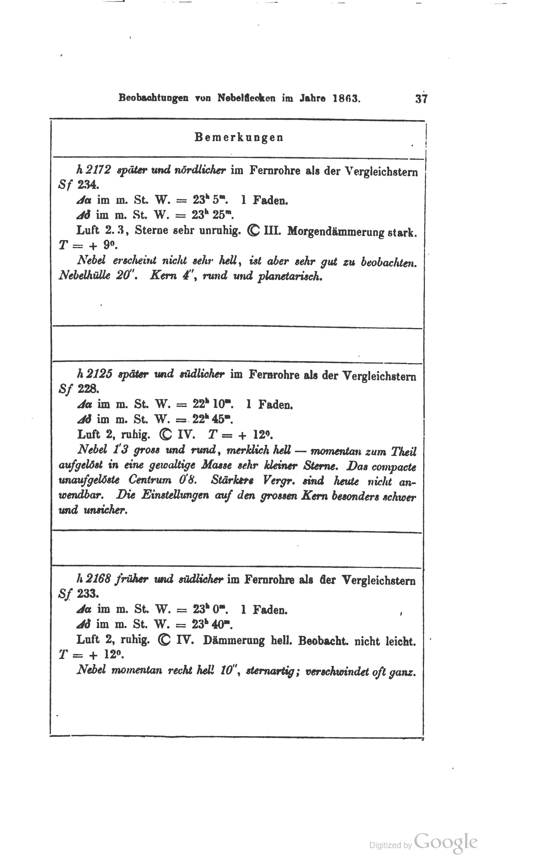 Beobachtungen von Nebelflecken im Jahre 1863. 37