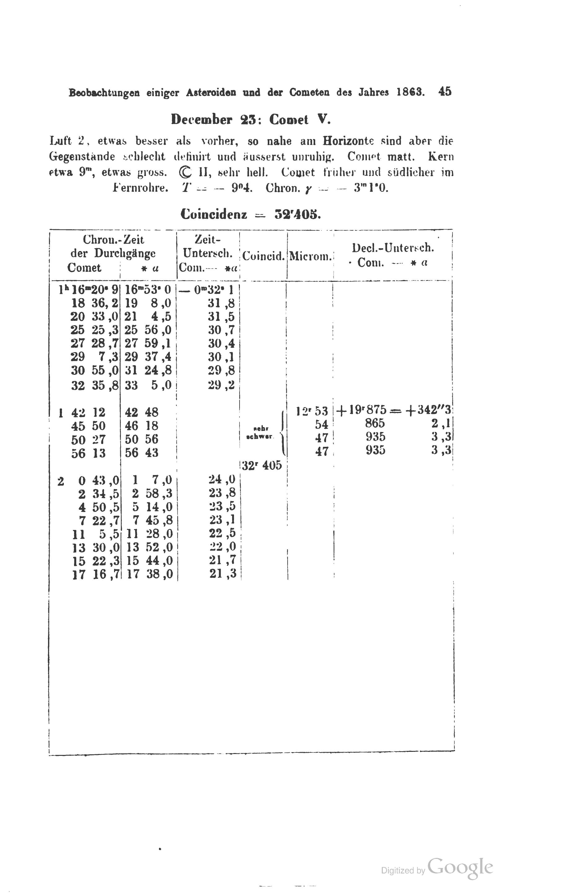 Beobachtungen einiger Asteroiden und der Cometen des Jahres 1863. 45