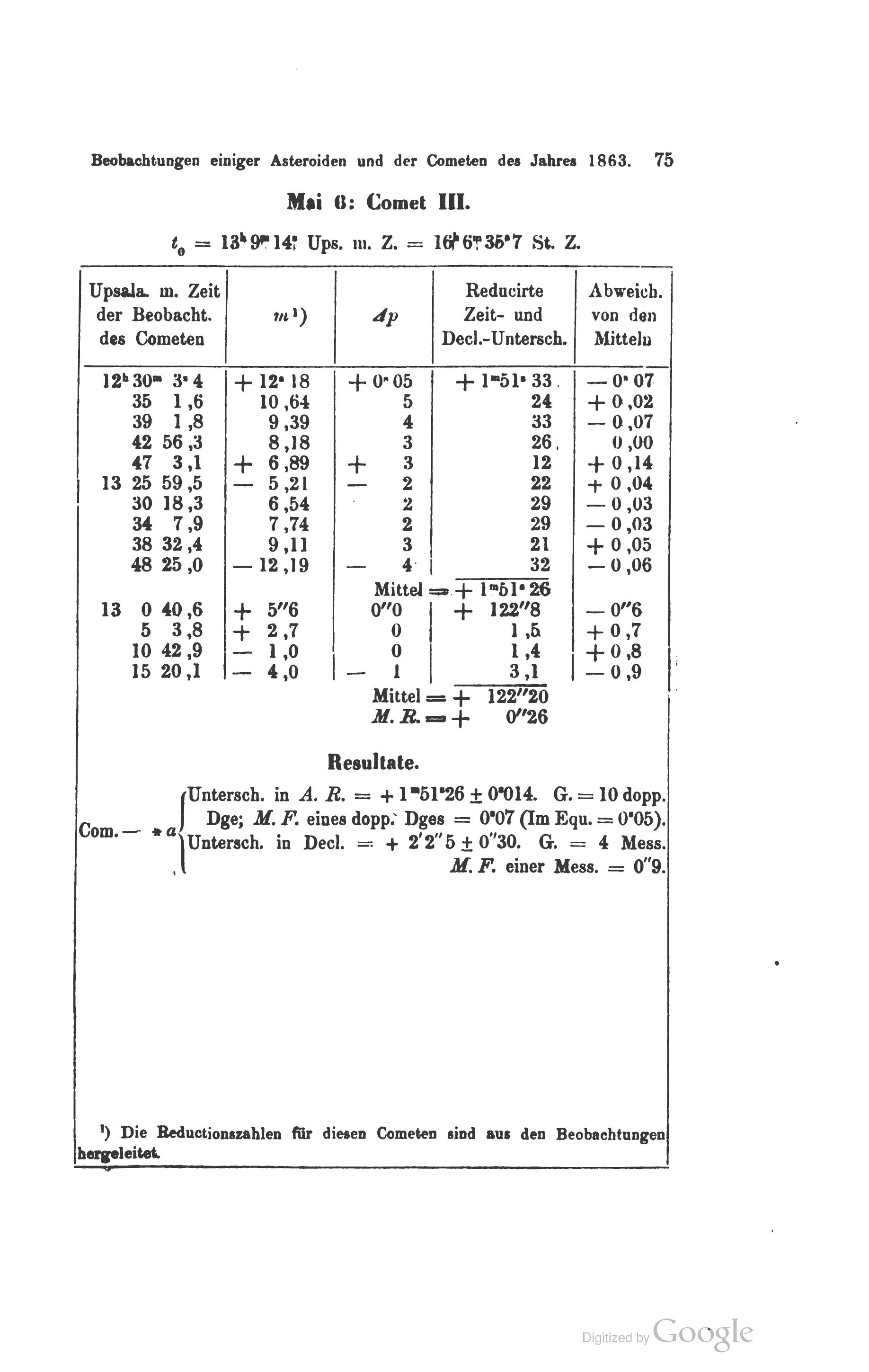 Beobachtungen einiger Asteroiden und der Cometen des Jahres 1863. 75