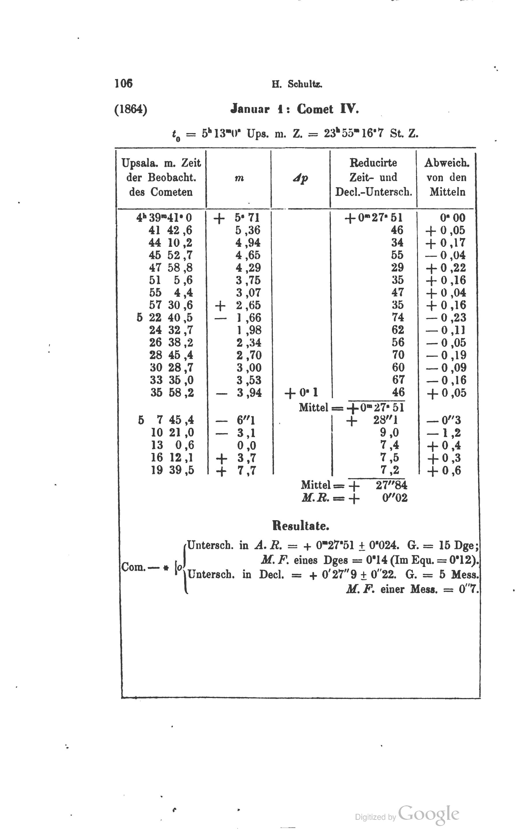 M. F. eines Dges = 0"14 (Im Equ. = 0"12).