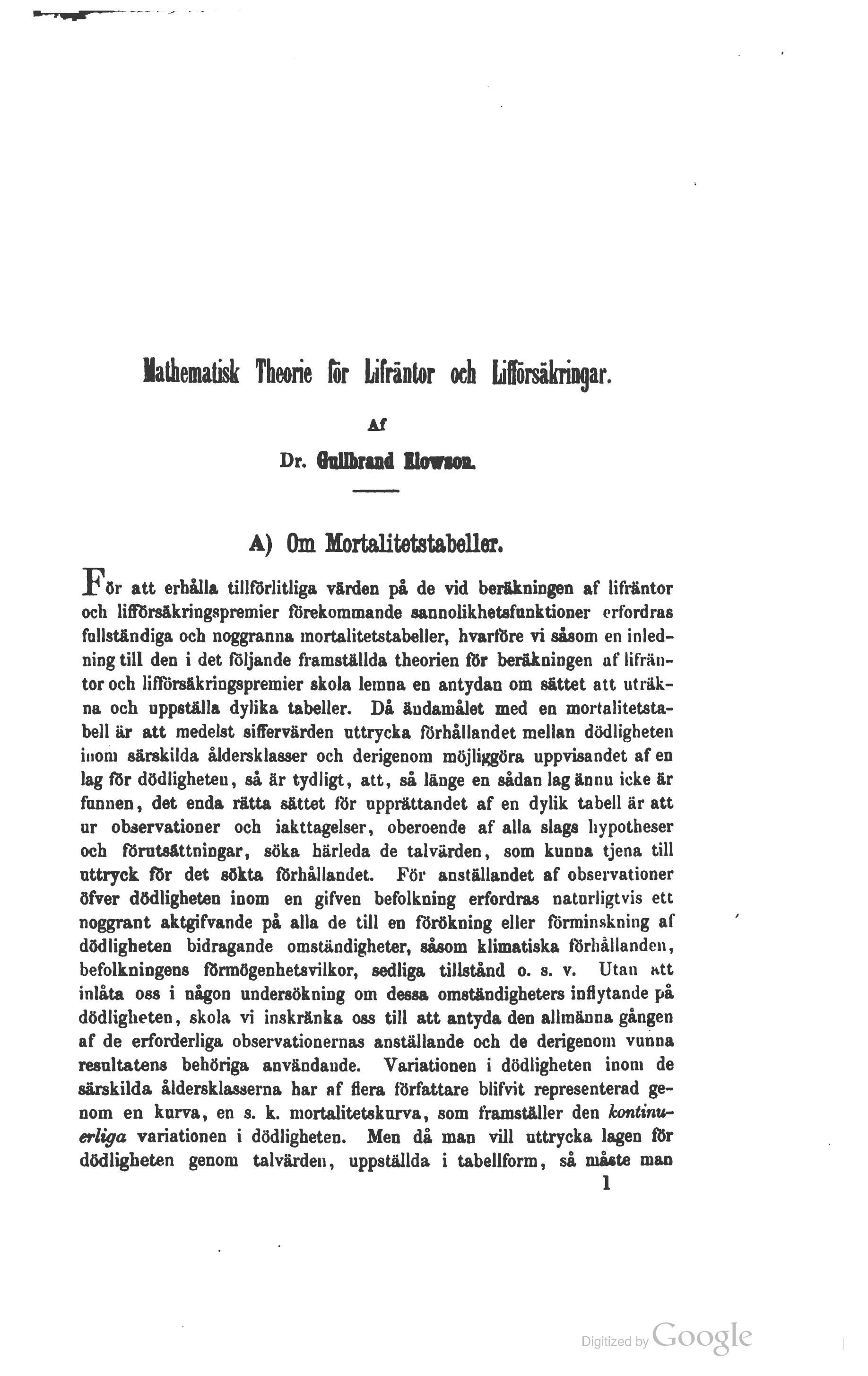 follständiga och noggranna mortalitetstabeller, hvarföre vi såsom en inled-