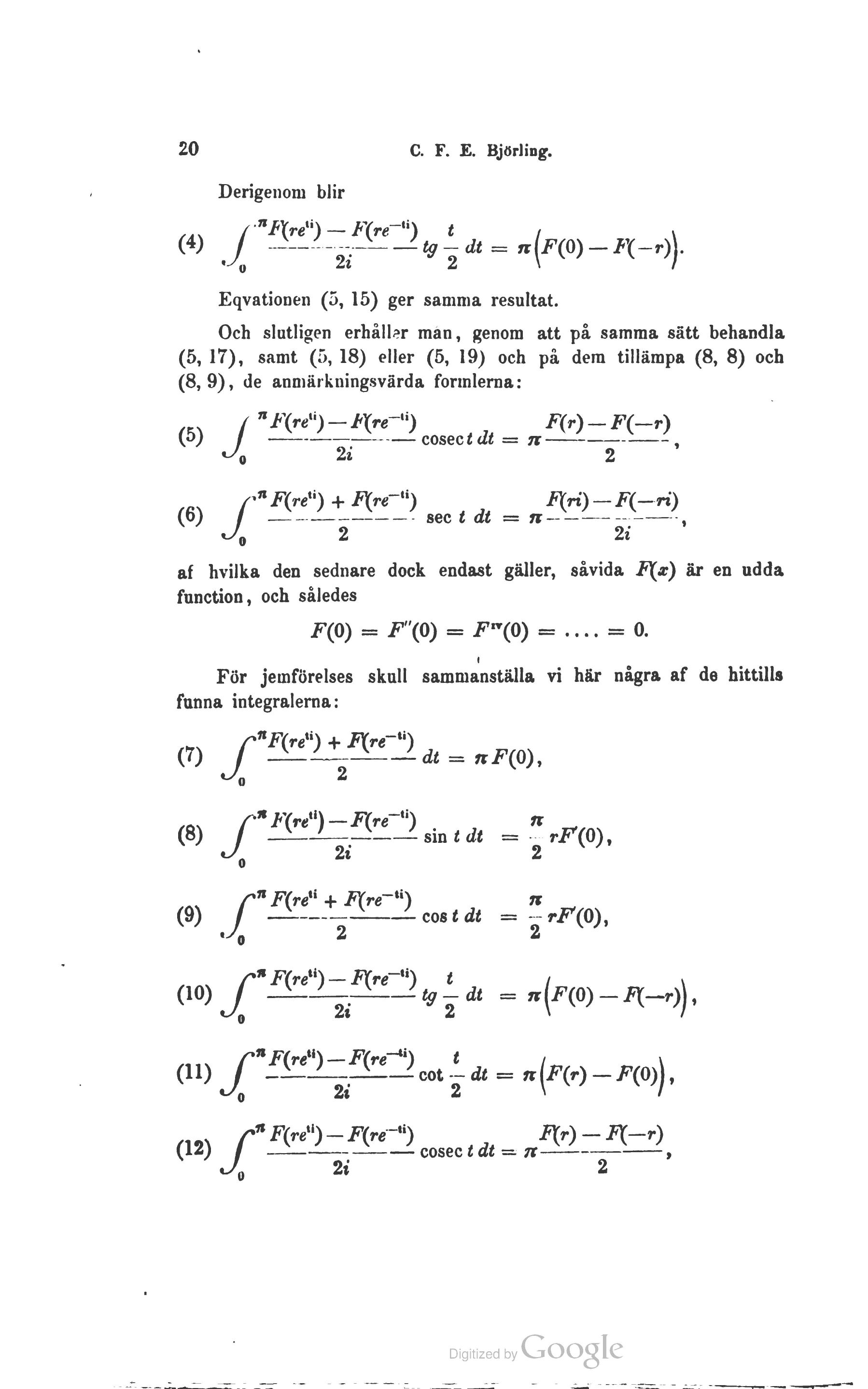 af hvilka den sednare dock endast gäller, såvida F(x) är en udda