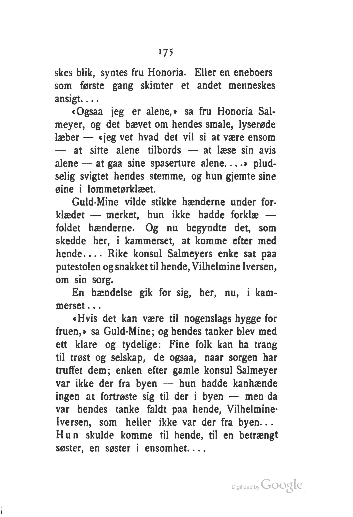 «Ogsaa jeg er alene,» sa fru Honoria Sal-