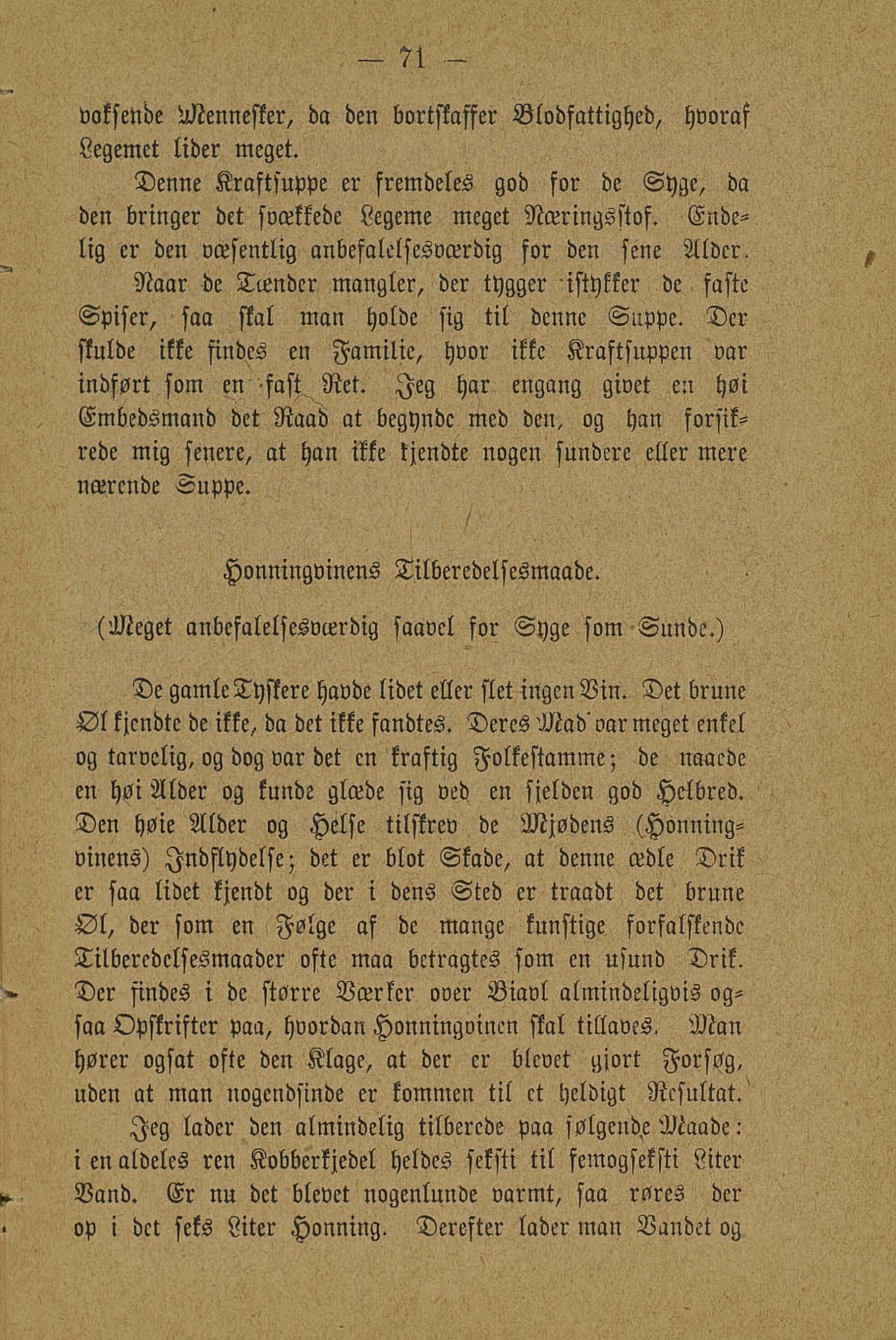 Den hoie Alder og Helse tilstrev de Mjodens (Honning
