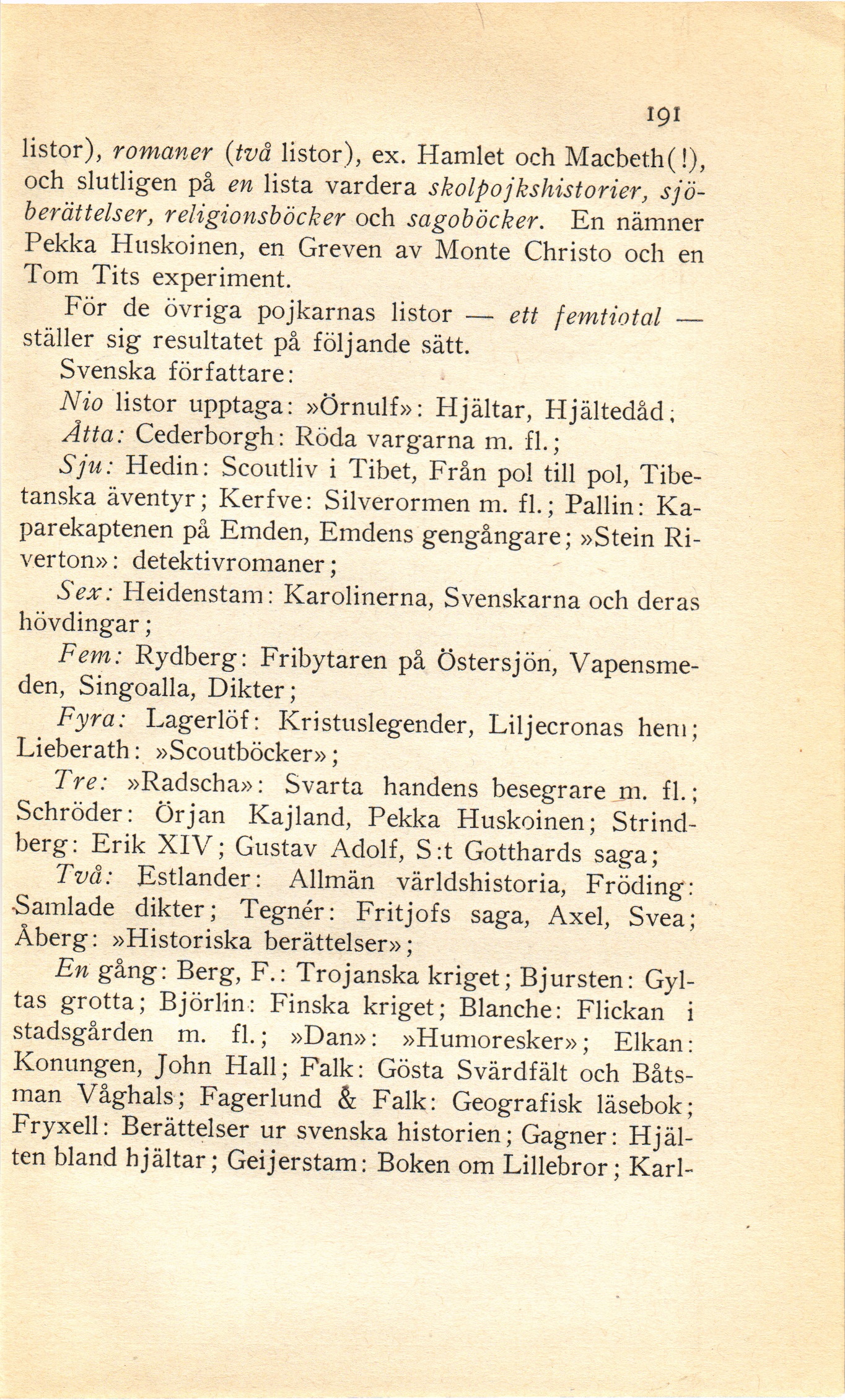 och slutligen på en lista vardera skolpojkshistorier,