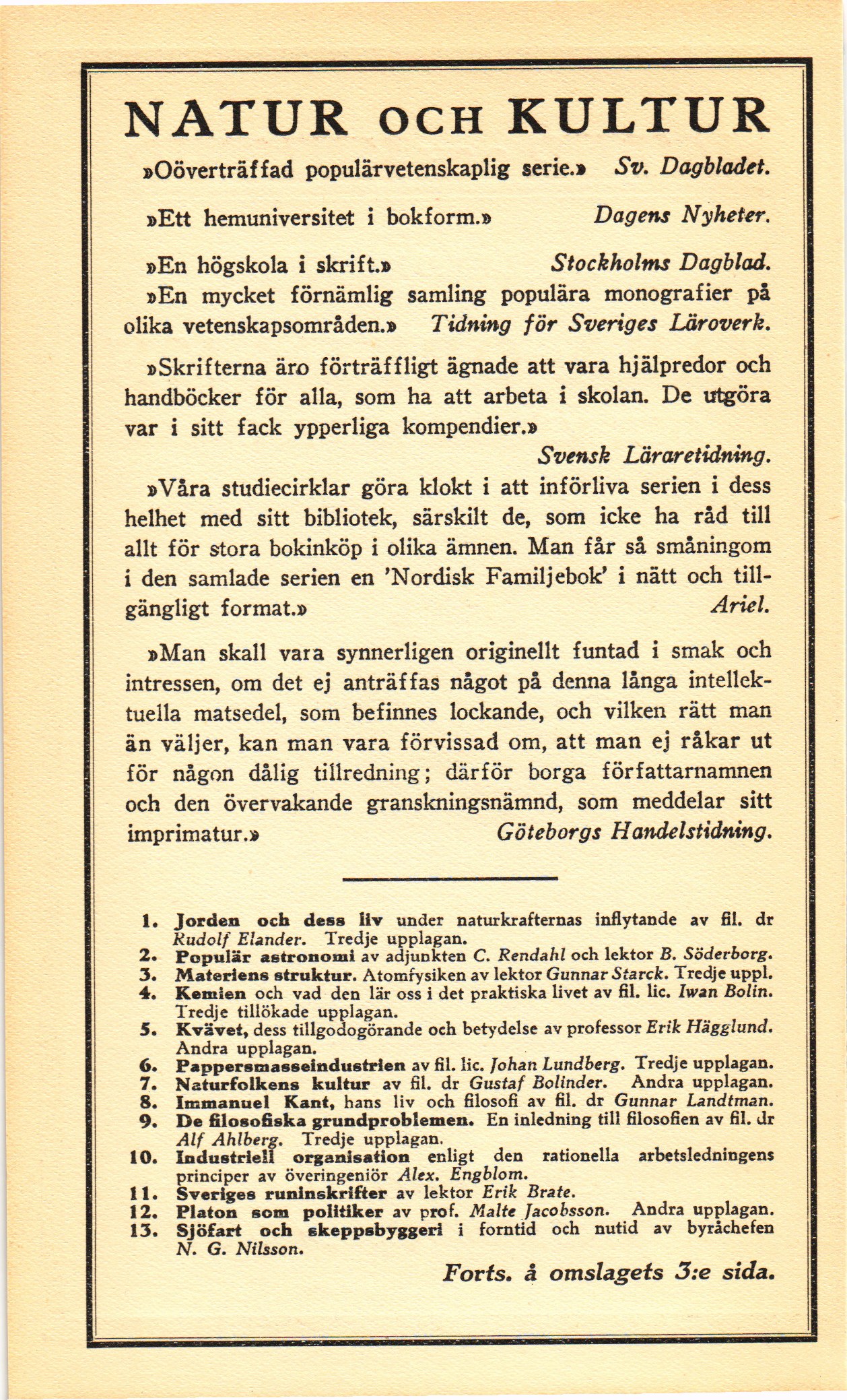 »Oöverträffad populärvetenskaplig serie.» Sv. Dagbladet.