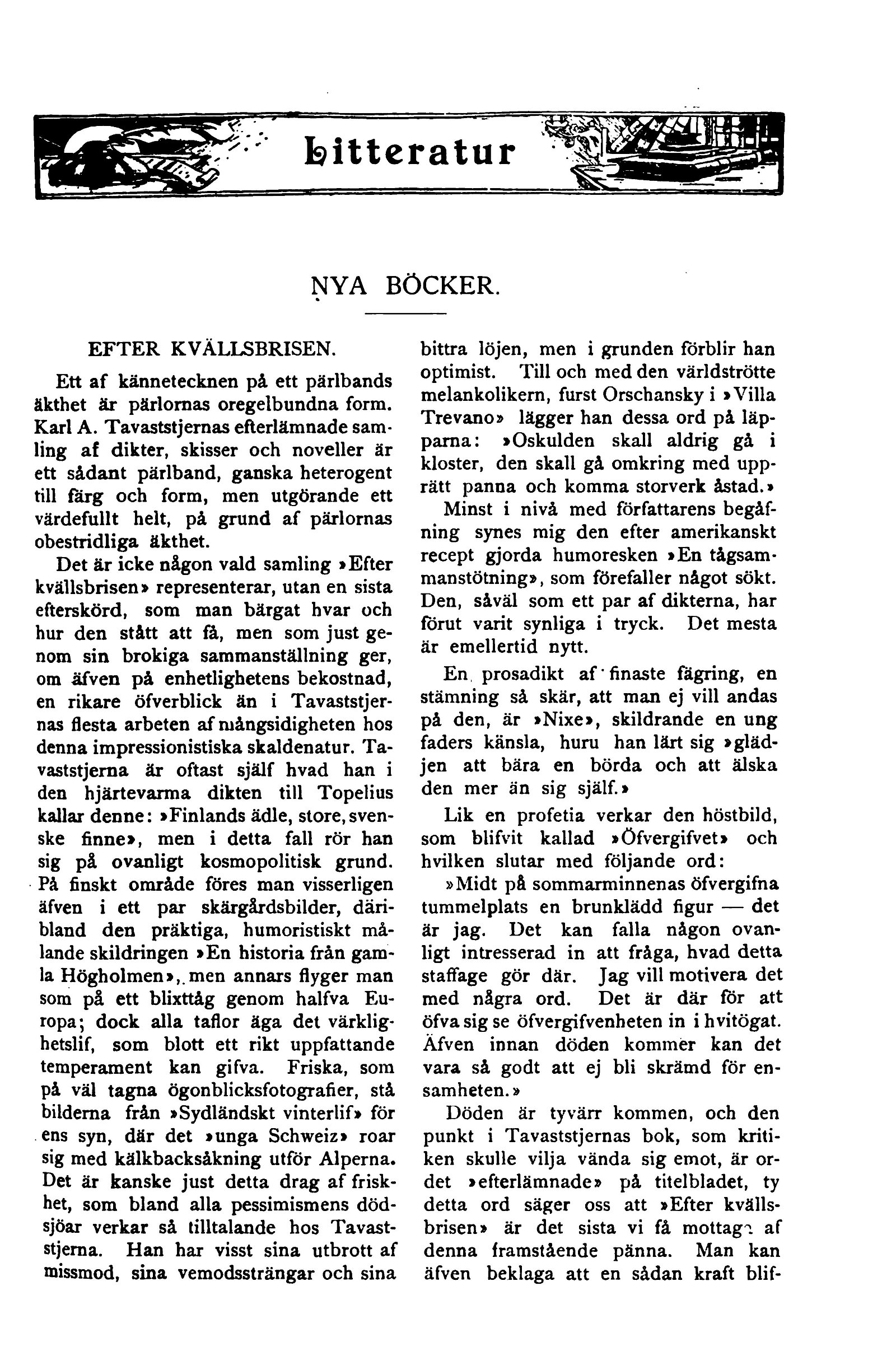 Full resolution (JPEG) - On this page / på denna sida - N:o 9, september 1899 - Litteratur. Nya böcker - Efter kvällsbrisen. Af Tristan