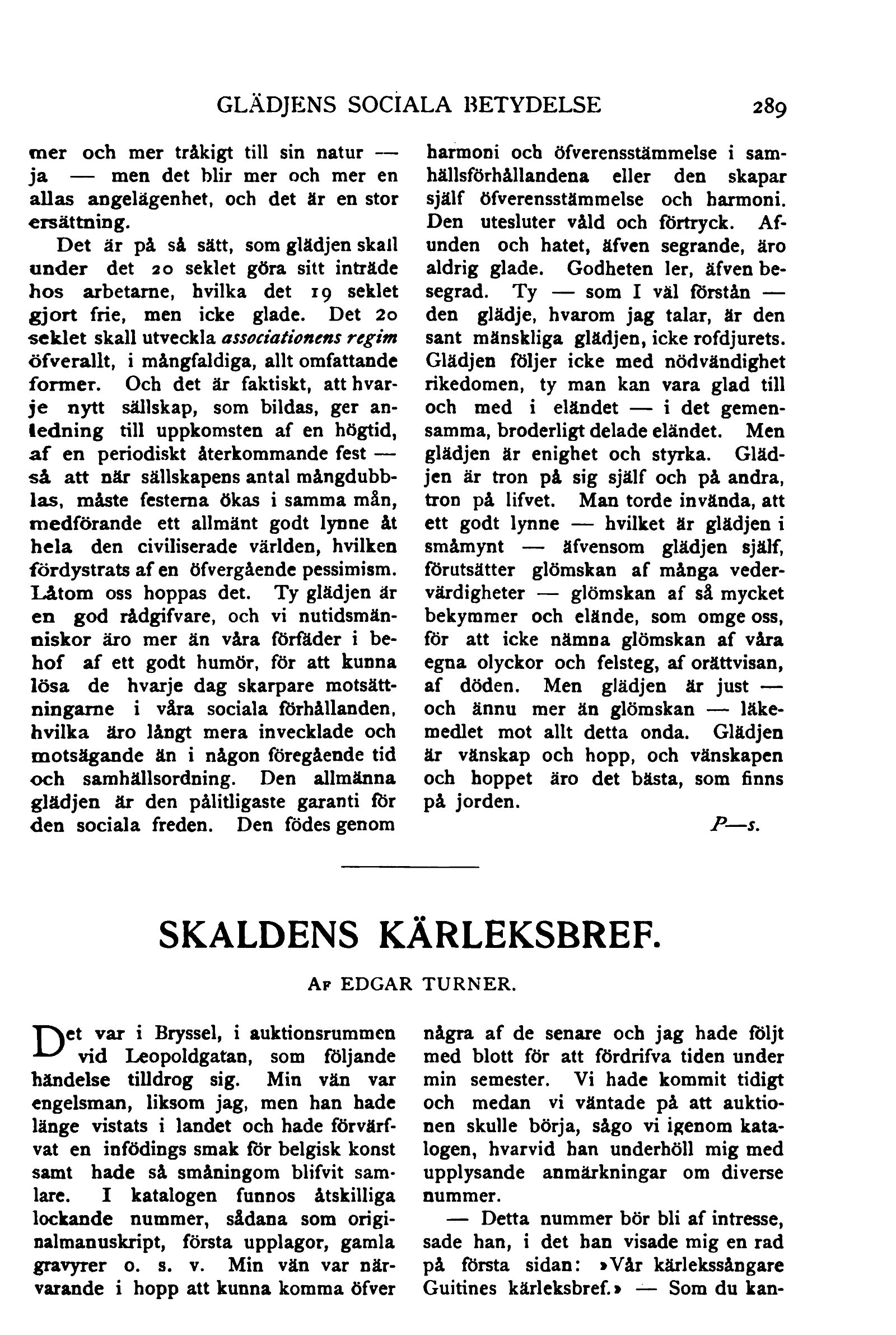 Full resolution (JPEG) - On this page / på denna sida - N:o 5, maj 1903 - Glädjens sociala betydelse. Föredrag af professor Gabriel Tarde. (Ur »La Revue Bleue»). Öfversättning af P—s - Skaldens kärleksbref. Af Edgar Turner