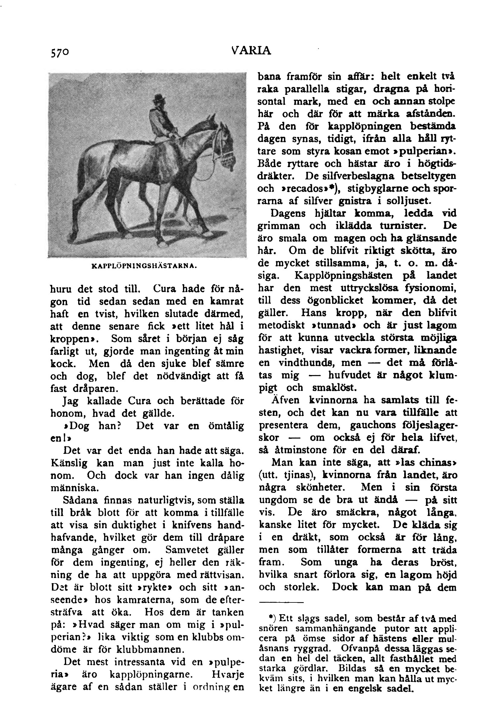»pulpe-ria» äro kapplöpningarne. Hvarje