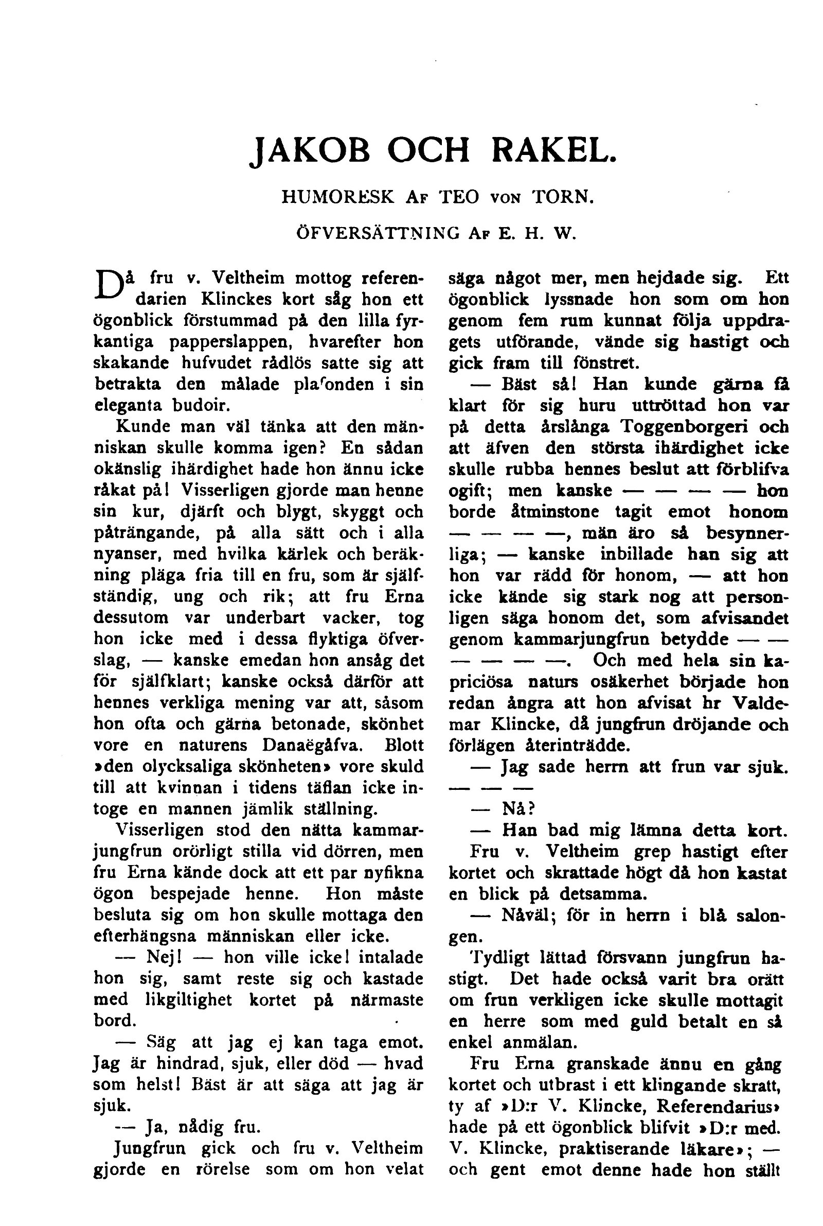 Full resolution (JPEG) - On this page / på denna sida - N:o 11, november 1903 - Jakob och Rakel. Humoresk af Teo von Torn. Öfversättning af E. H. W.