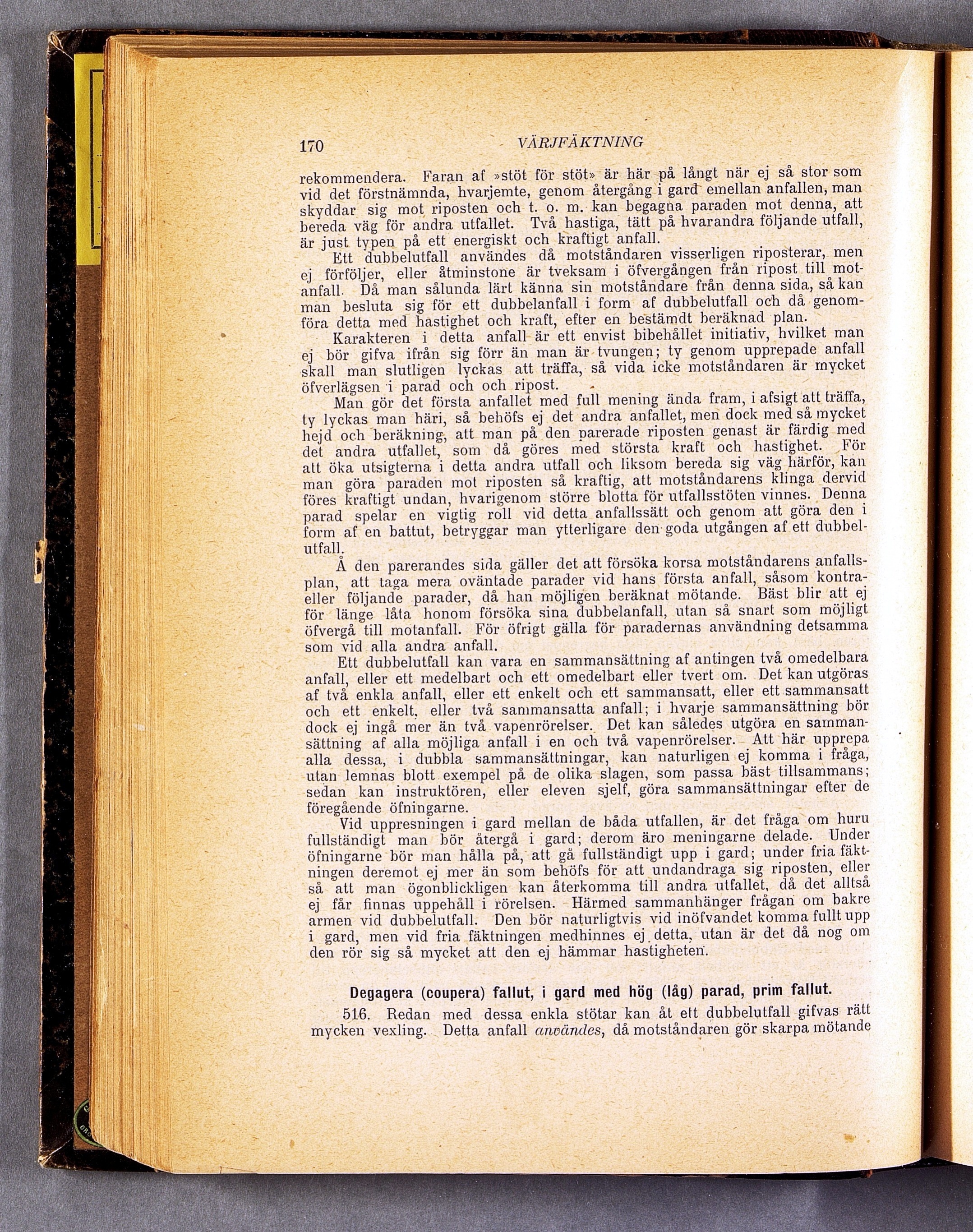 föres kraftigt undan, hvarigenom större blotta för utfallsstöten vinnes. Denna