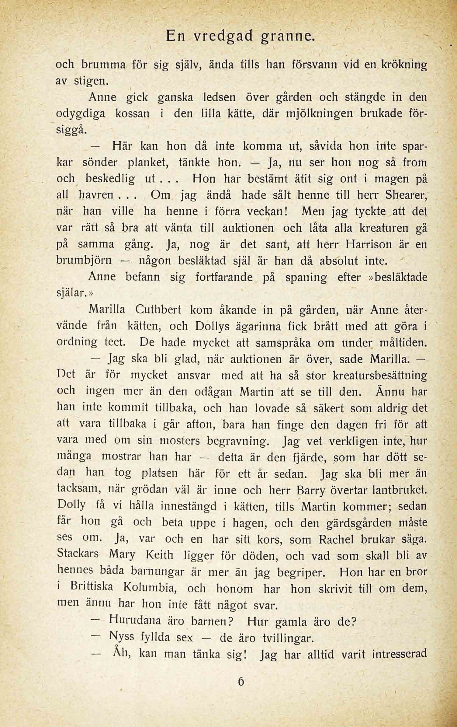 Marilla Cuthbert kom åkande in på gården, när Anne åter-