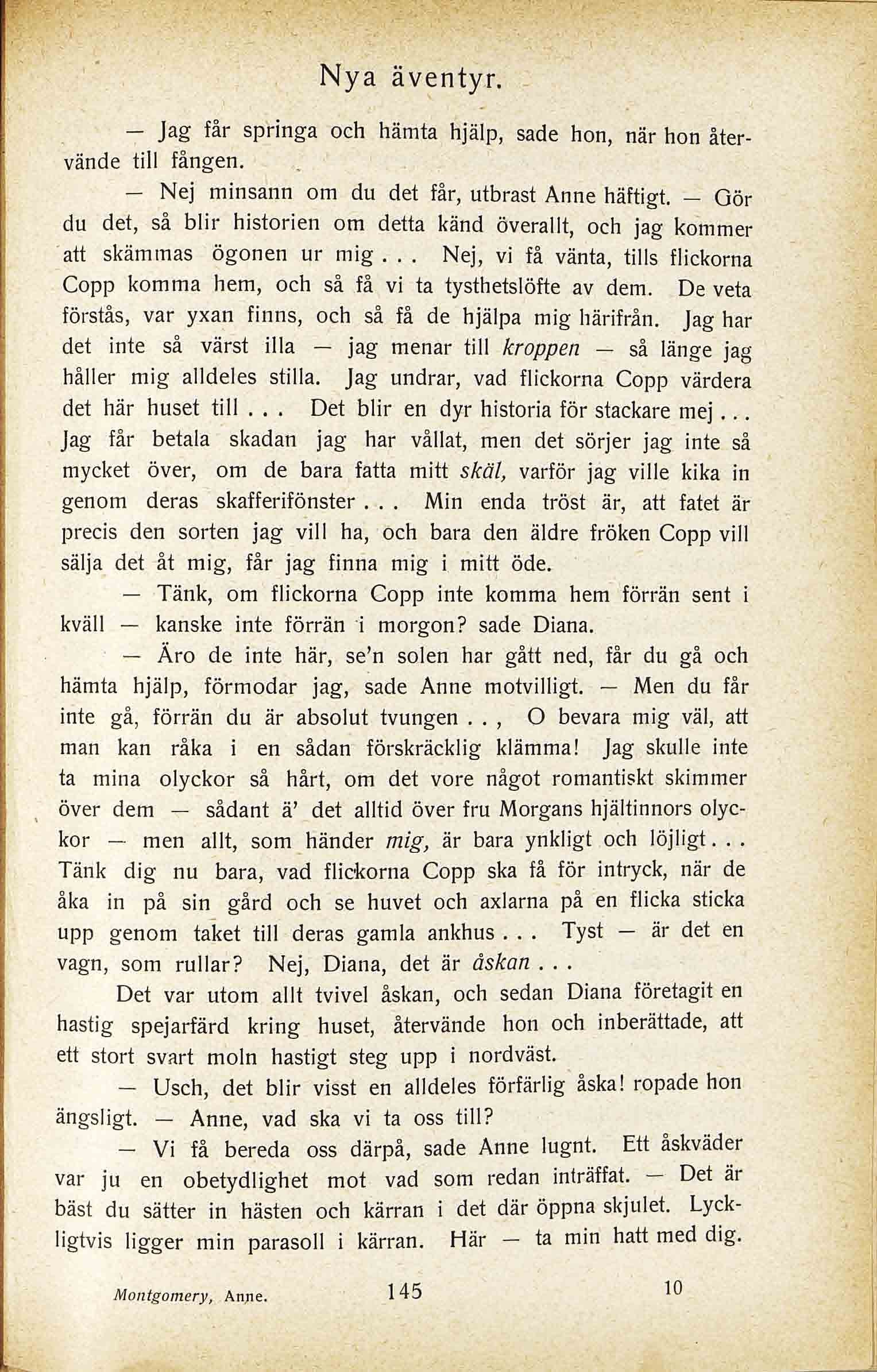 hämta hjälp, förmodar jag, sade Anne motvilligt. — Men du får