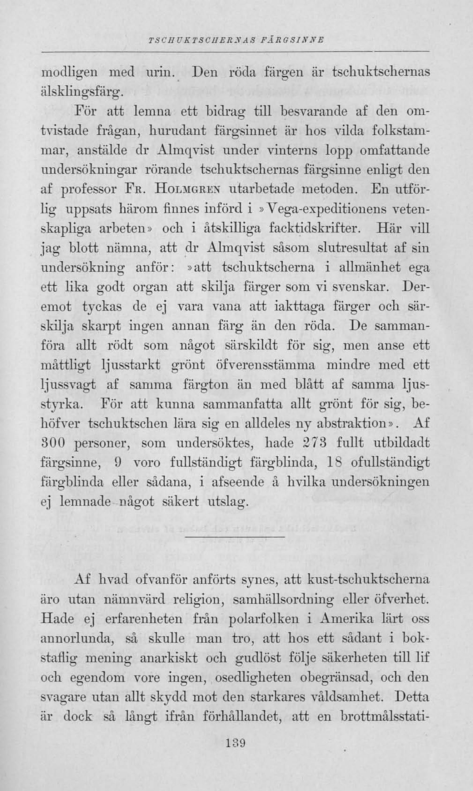 undersökningar rörande tschuktschernås färgsinne enligt den