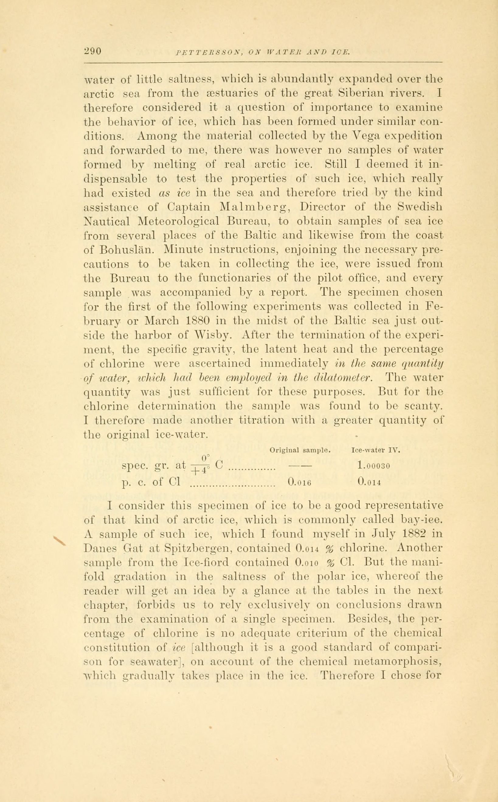 sample from the Ice-fiord contained O.010 % Cl. But the