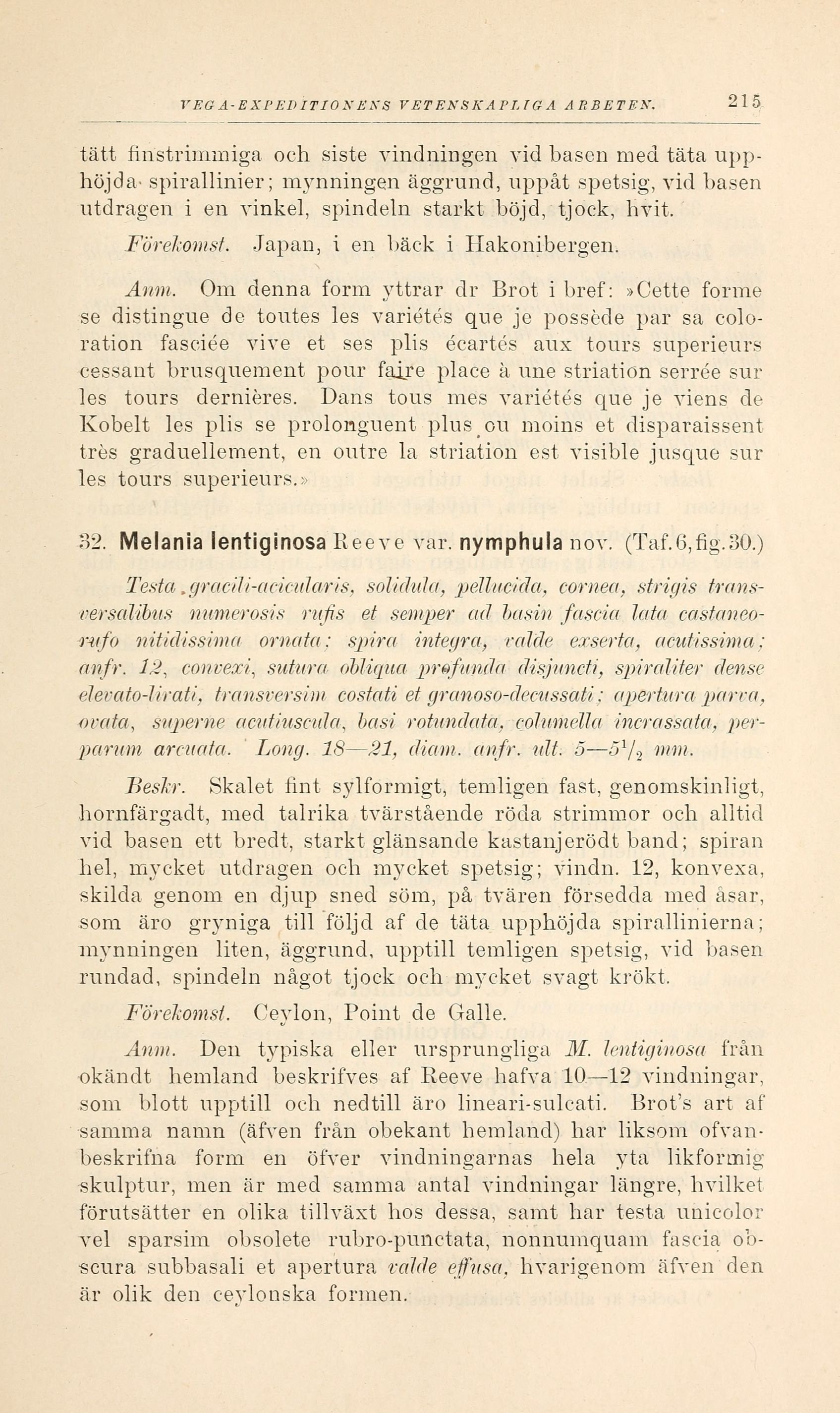 32. Melania lentiginosa Reeve var. nymphula nov. (Taf.6,fig.30.)