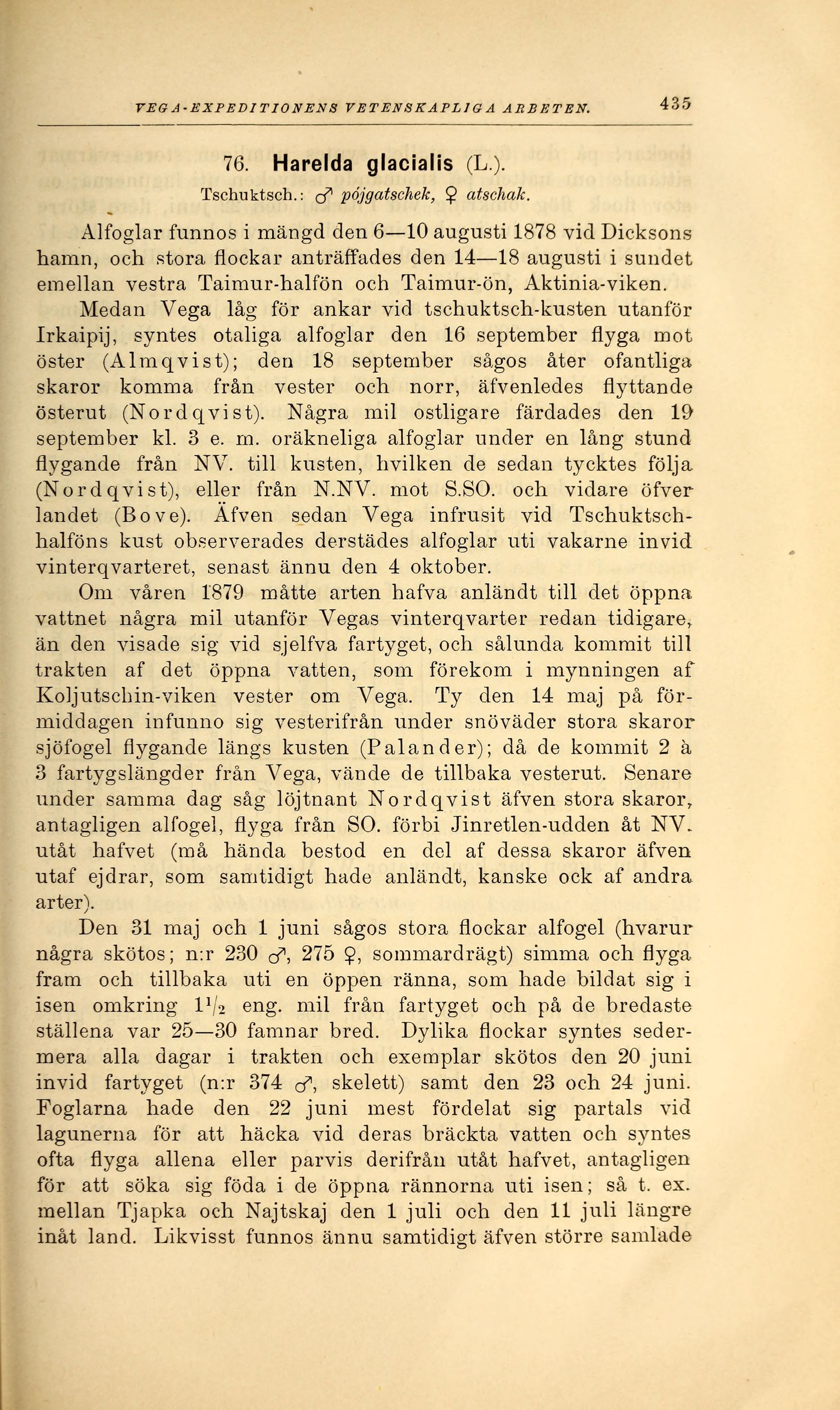 Tschuktsch-halföns kust observerades derstädes alfoglar uti vakarne invid