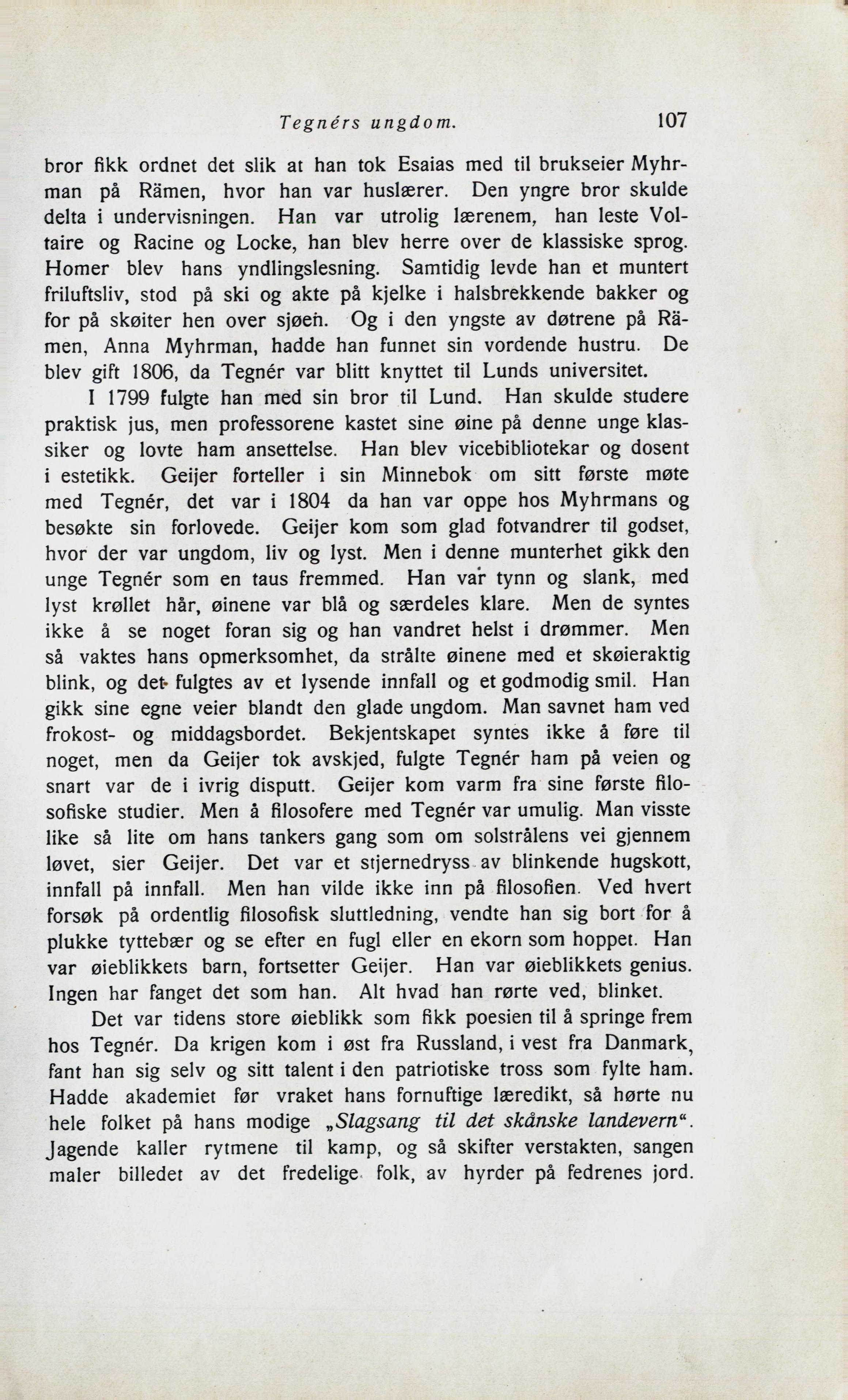 filosofiske studier. Men å filosofere med Tegner var umulig. Man visste