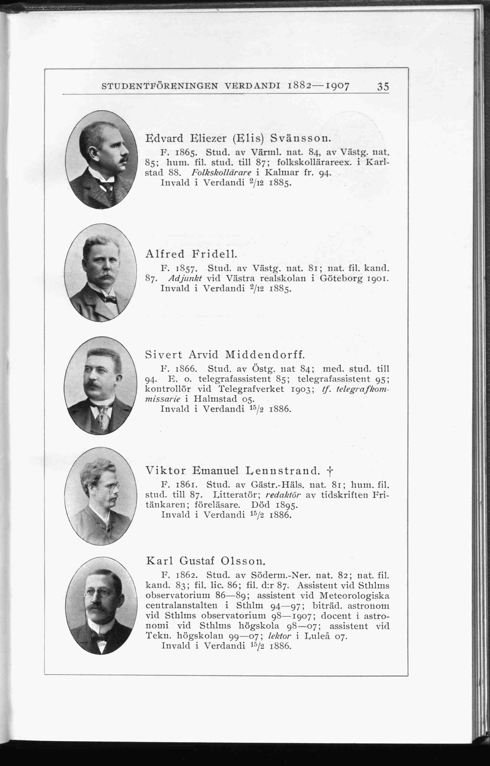 F. 1865. Stud. av Värml. nat. 84, av Västg. nat.