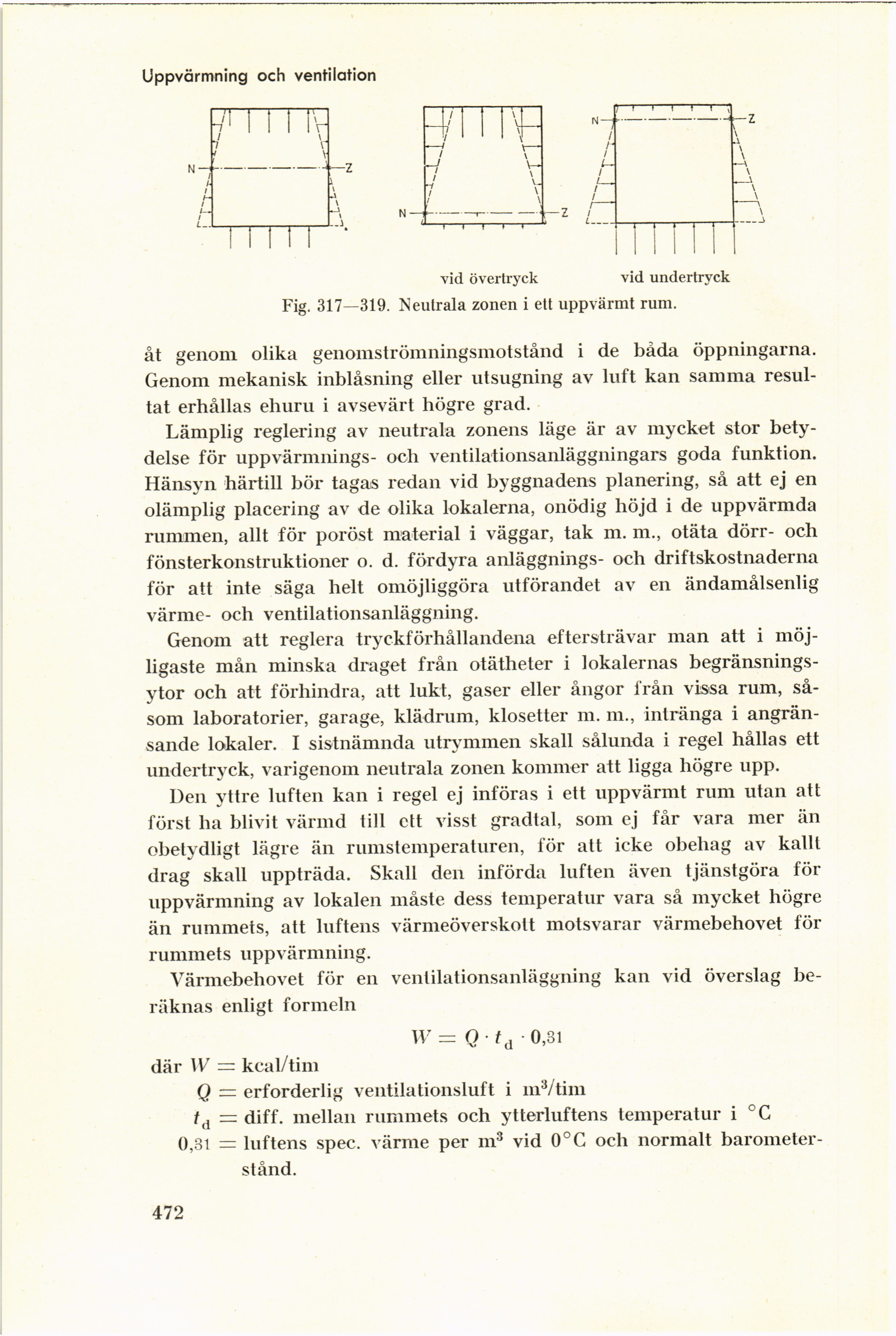 Fig. 317—319. Neutrala zonen i ett uppvärmt rum.