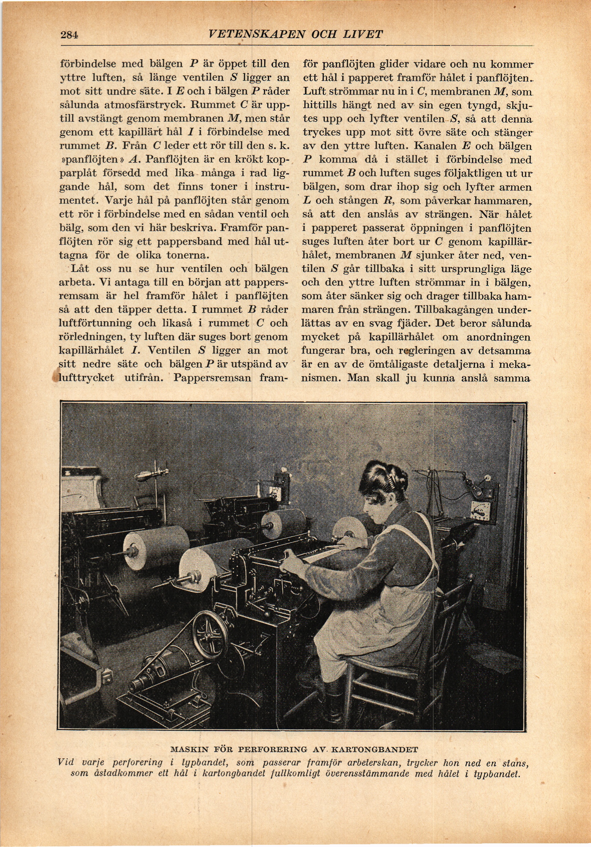 Vid varje perforering i typbandet, som passerar framför arbeterskan, trycker hon ned en stans,