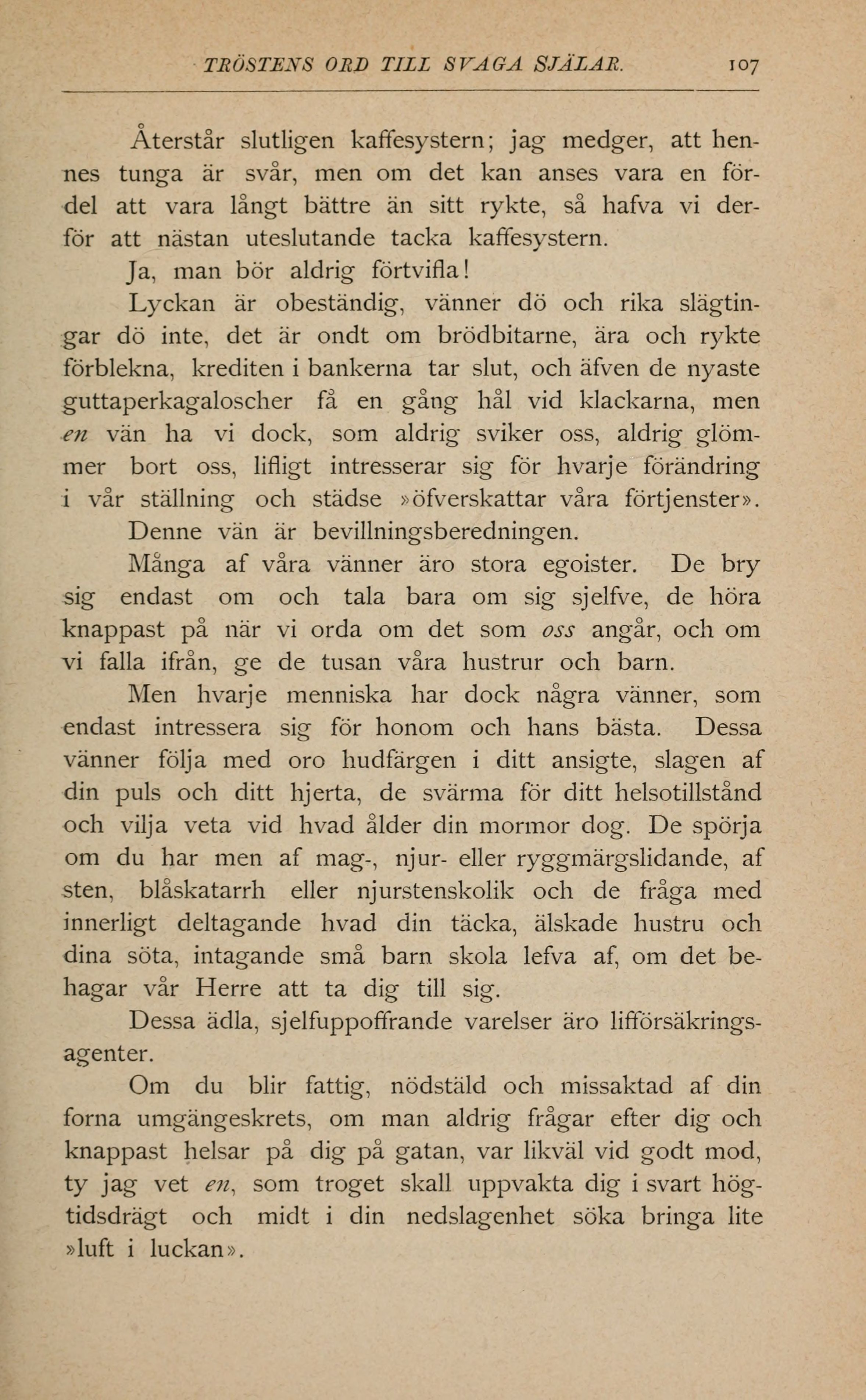 i vår ställning och städse »öfverskattar våra förtjenster».