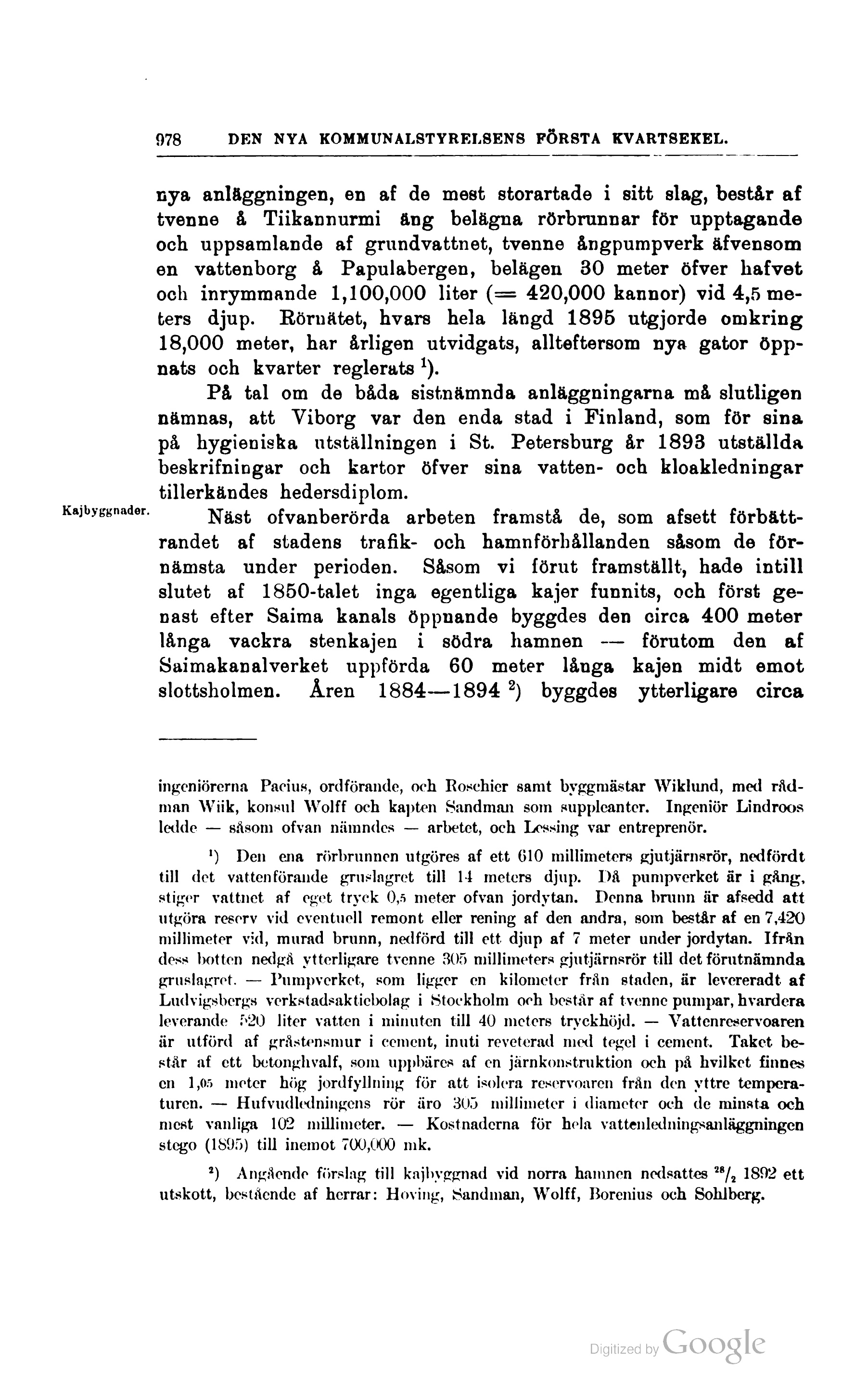 ingenìörerna Paeius, ordförande, oeh Roschier samt byggmästar ‘Viklund, med räd