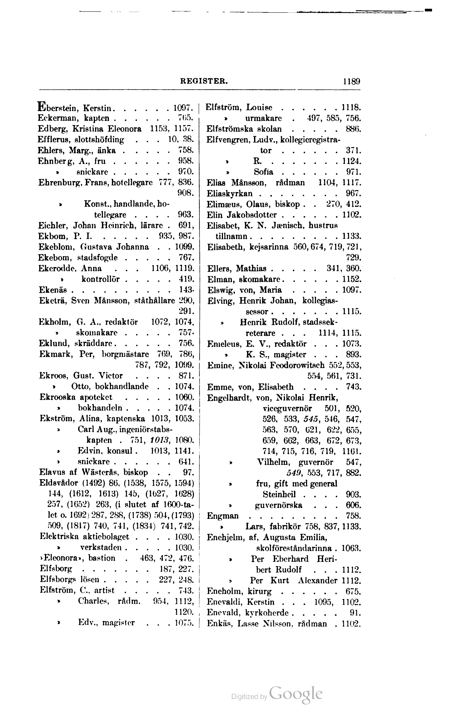 Ebrenburg, Frans, hotellegnrc 777, 836. Elias Mânsson, rñdman 1104, 1117.